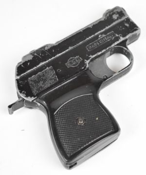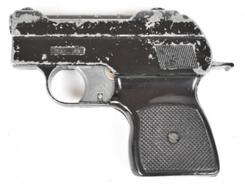 Three blank firing pistols comprising Frontier Six-Shooter six-shot revolver with faux ivory grips and 4.75 inch barrel, in original box, Sussex Armoury six-shot revolver with chequered composite grips and a BBM .22 starting pistol.