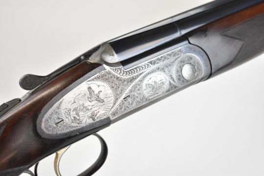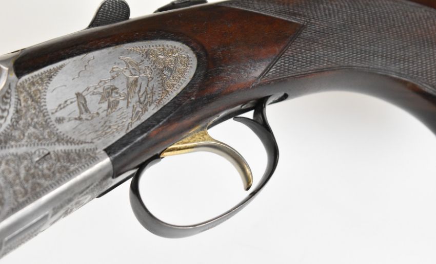 Lincoln No.2 12 bore over and under ejector shotgun with engraved scenes of birds to the sidelock plates and underside, scrolling engraving to the trigger guard, top plate and thumb lever, chequered semi-pistol grip and forend, vacant cartouche to the underside of the stock, single trigger, vented top rib and 27.25 inch multi-choke barrels, overall length 113cm, length of pull 36cm, serial number 62356. PLEASE NOTE THAT A VALID RELEVANT SHOTGUN CERTIFICATE IS REQUIRED TO VIEW OR PURCHASE THIS LOT AND FOR ALL SHOTGUNS OR RIFLES. PLEASE ENSURE YOU HAVE THE RELEVANT CERTIFICATE BEFORE BIDDING.