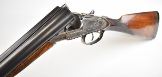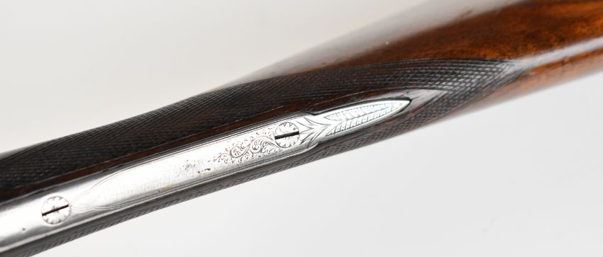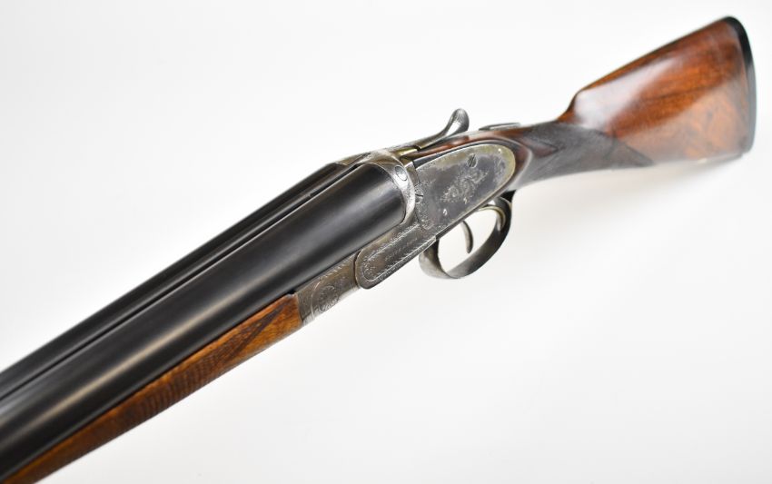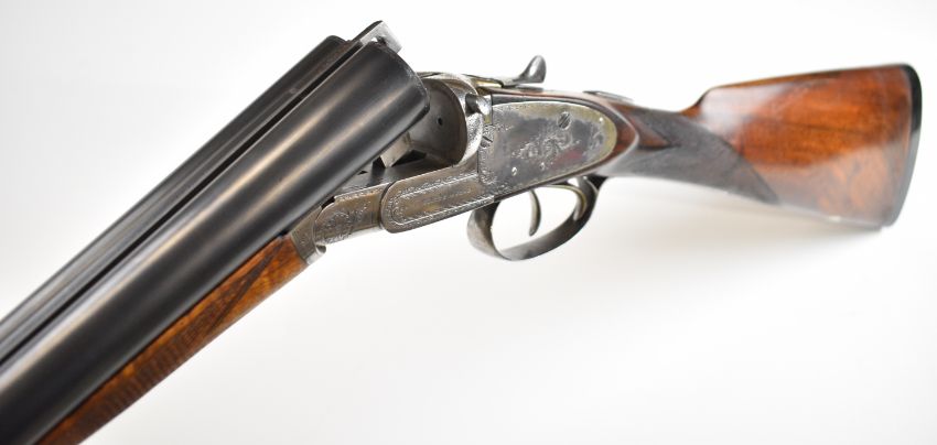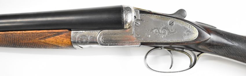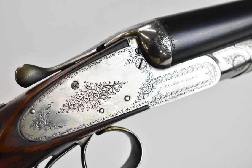 Charles Smith & Sons of Newark-on-Trent 12 bore side by side sidelock ejector shotgun with named and engraved locks, engraved underside, trigger guard, top plate, thumb lever and fences, chequered grip and horn tipped forend, vacant cartouche to the underside of the stock, double trigger and named 30.25 inch barrels choked ½ and cylinder, overall length 120cm, length of pull 36.5cm, serial number 81. PLEASE NOTE THAT A VALID RELEVANT SHOTGUN CERTIFICATE IS REQUIRED TO VIEW OR PURCHASE THIS LOT AND FOR ALL SHOTGUNS OR RIFLES PLEASE ENSURE YOU HAVE THE RELEVANT CERTIFICATE BEFORE BIDDING.