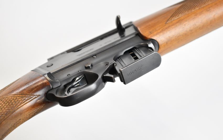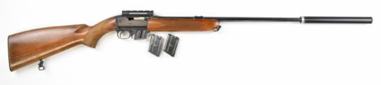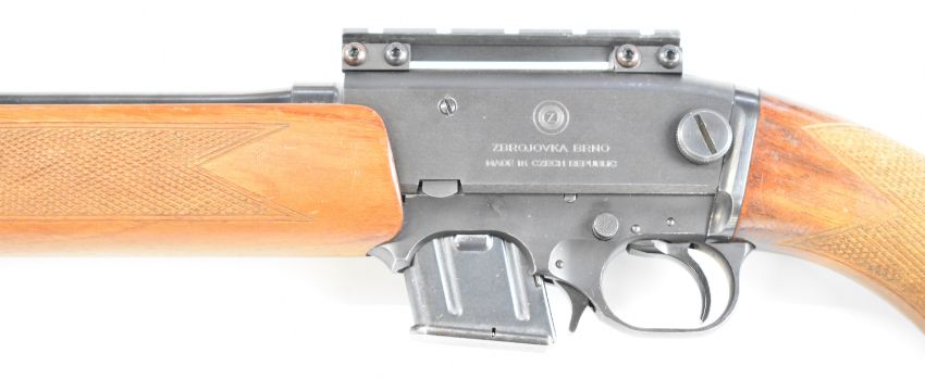 BRNO ZKM-611 .22 WMR semi-automatic rifle with chequered semi-pistol grip and forend, sling mounts, three multi-shot magazines, scope rail, sound moderator and 28.5 inch barrel, overall length 119cm, serial number 3515 01338. PLEASE NOTE THAT A VALID RELEVANT FIREARMS CERTIFICATE IS REQUIRED TO VIEW OR PURCHASE THIS LOT AND FOR ALL SHOTGUNS OR RIFLES. PLEASE ENSURE YOU HAVE THE RELEVANT CERTIFICATE BEFORE BIDDING.