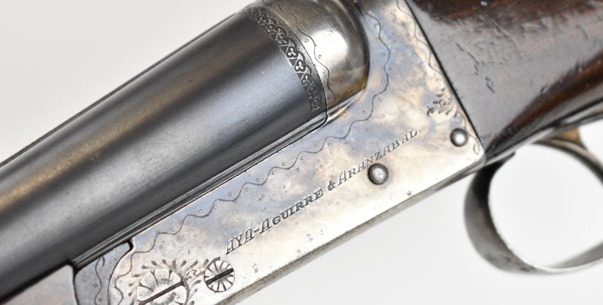 AYA No. 3 16 bore side by side shotgun with named and engraved locks, engraved underside, trigger guard, top plate, thumb lever and fences, chequered grip and forend, double trigger and named 28 inch barrels, overall length 114.5cm, length of pull 37cm, serial number 191633. PLEASE NOTE THAT A VALID RELEVANT SHOTGUN CERTIFICATE IS REQUIRED TO VIEW OR PURCHASE THIS LOT AND FOR ALL SHOTGUNS OR RIFLES. PLEASE ENSURE YOU HAVE THE RELEVANT CERTIFICATE BEFORE BIDDING.