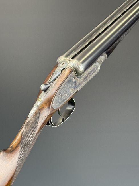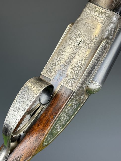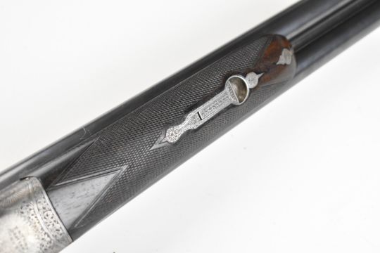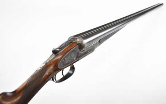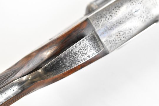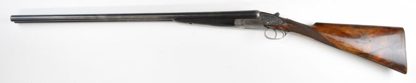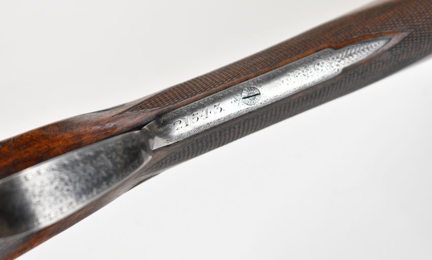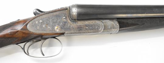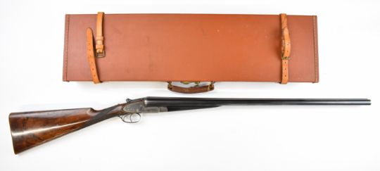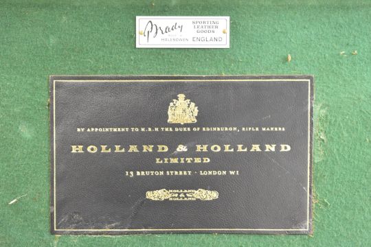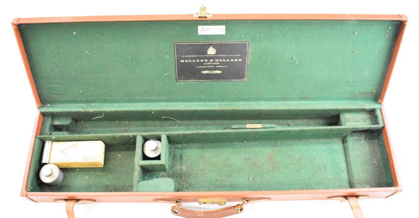 Holland & Holland 12 bore side by side sidelock ejector shotgun with fine scrolling engraving to the named locks, underside, trigger guard, top plate, thumb lever and fences, chequered grip and forend, carved teardrop to the wrist, vacant cartouche to the underside of the stock, double trigger and named 30 inch barrels choked cylinder, overall length 122.5cm, length of pull 40.5cm, serial number 21543, in Brady of Halesowen fitted leather case with 'Holland & Holland Limited 13 Bruton Street London W1 By appointment to H.R.H. The Duke of Edinburgh, Rifle Makers' label. PLEASE NOTE THAT A VALID RELEVANT SHOTGUN CERTIFICATE IS REQUIRED TO VIEW OR PURCHASE THIS LOT AND FOR ALL SHOTGUNS OR RIFLES PLEASE ENSURE YOU HAVE THE RELEVANT CERTIFICATE BEFORE BIDDING.