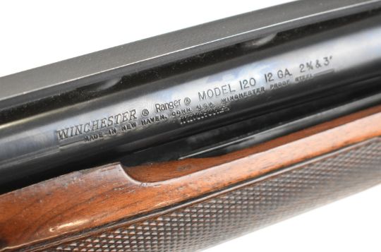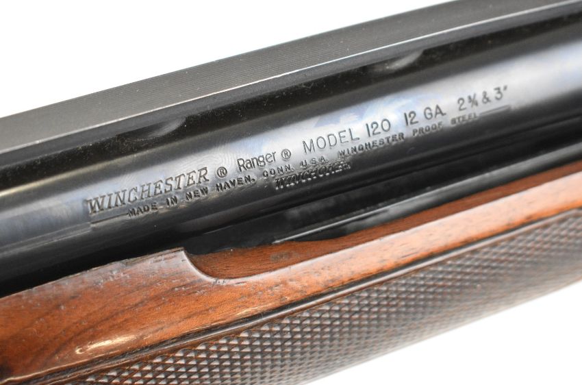 Winchester Ranger 120 12 bore 3-shot pump-action shotgun with chequered semi-pistol grip and forend and 28.5 inch multi-choke barrel, overall length 124cm, length of pull 35.5cm, serial number L1276440. PLEASE NOTE THAT A VALID RELEVANT SHOTGUN CERTIFICATE IS REQUIRED TO VIEW OR PURCHASE THIS LOT AND FOR ALL SHOTGUNS OR RIFLES PLEASE ENSURE YOU HAVE THE RELEVANT CERTIFICATE BEFORE BIDDING.
