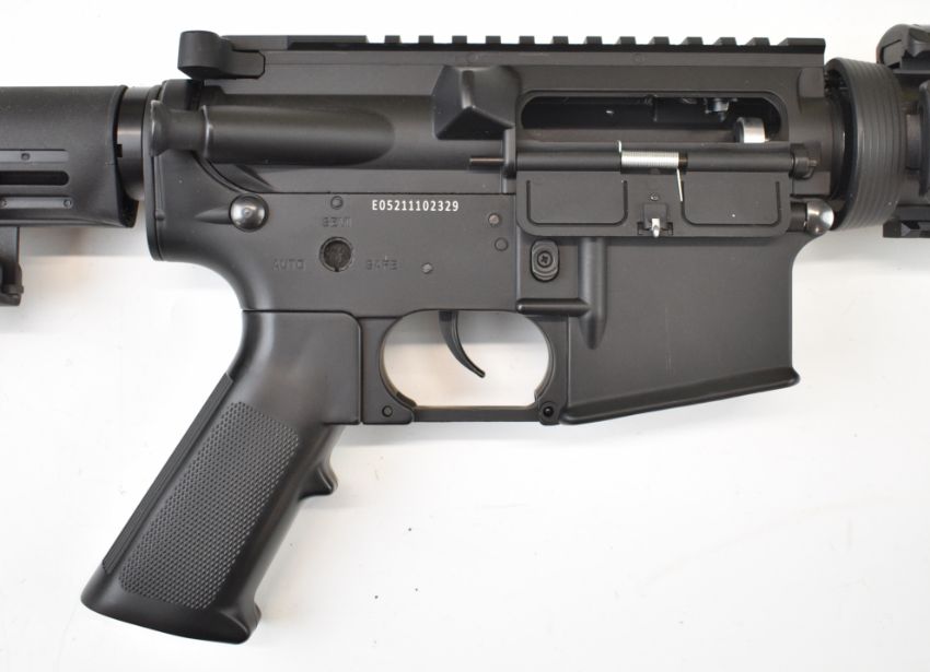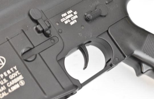 Cybergun FN Herstal US Govenment M4A1 Carbine .177 assault style air rifle with tactical stock, textured pistol grip and scope rail, serial number E05211102260, in original box with instructions. PLEASE NOTE: ALL POST - 1939 AIR GUNS CAN ONLY BE SHIPPED TO AN RFD AND NOT TO A HOME ADDRESS.