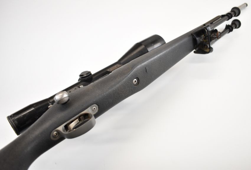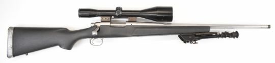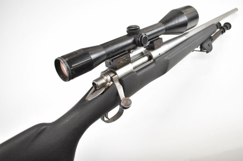 Remington Model 700 .308 Winchester bolt-action rifle with composite stock, semi-pistol grip, raised cheek piece, sling mounts, bi-pod, Schmidt & Bender 8x56 scope and 23 inch barrel, overall length 105.5cm, serial number S6502343. PLEASE NOTE THAT A VALID RELEVANT FIREARMS CERTIFICATE IS REQUIRED TO VIEW OR PURCHASE THIS LOT AND FOR ALL SHOTGUNS OR RIFLES PLEASE ENSURE YOU HAVE THE RELEVANT CERTIFICATE BEFORE BIDDING.