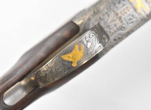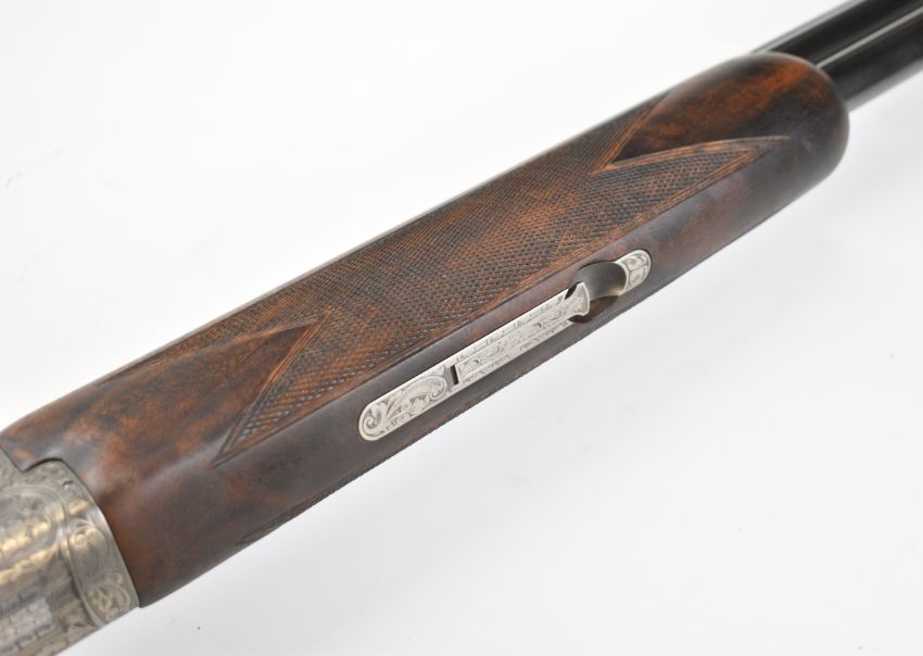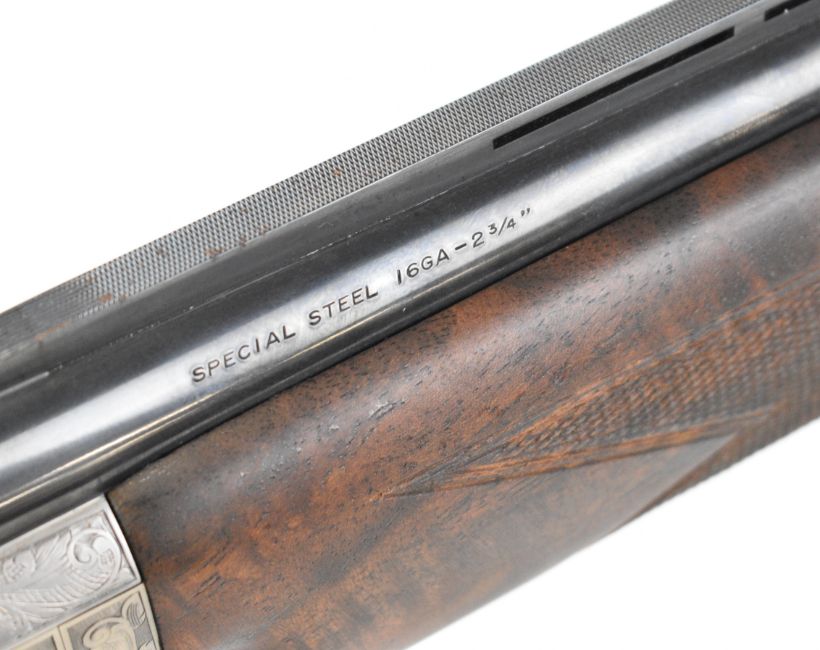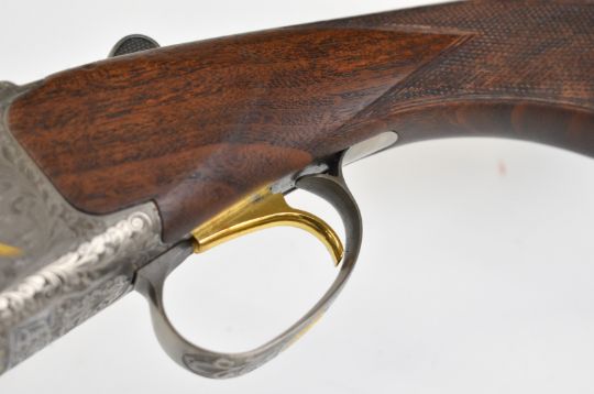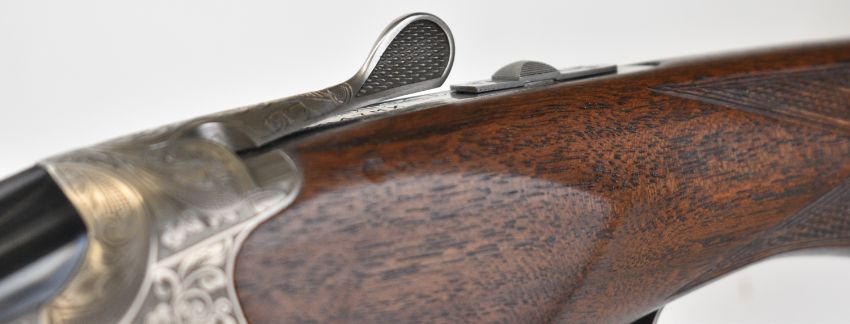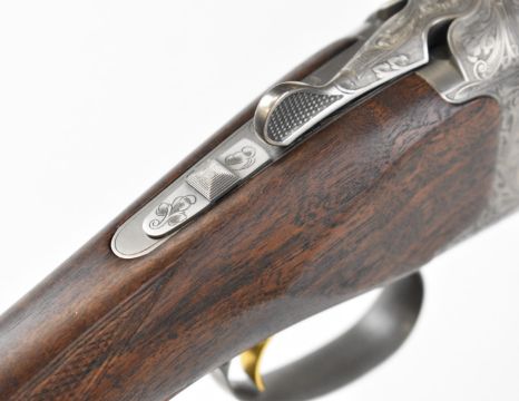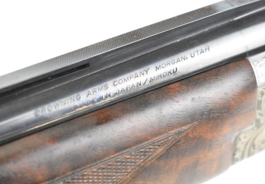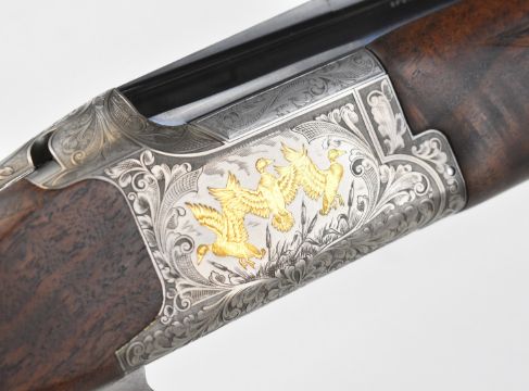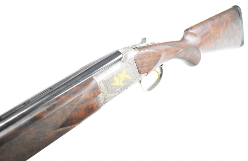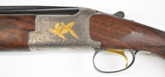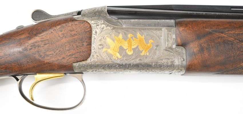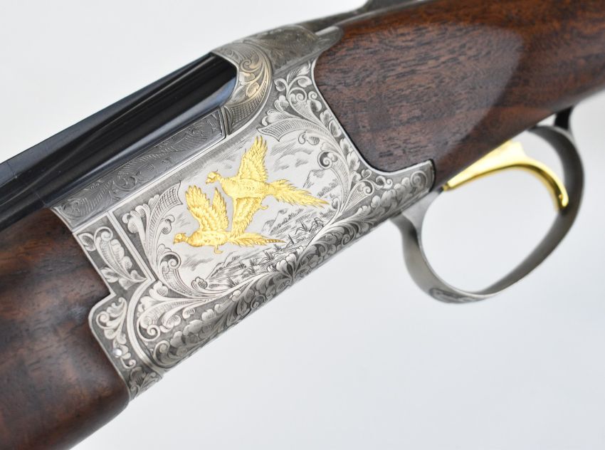 Browning 425 Grade 6 16 bore over and under ejector shotgun with gold inlaid dogs and birds to the engraved action, trigger guard and underside, chequered semi-pistol grip and forend, vacant cartouche to the underside of the stock, single trigger, vented top rib and 26 inch multi-choke barrels, overall length 111cm, length of pull 38cm, serial number 73947MX. PLEASE NOTE THAT A VALID RELEVANT SHOTGUN CERTIFICATE IS REQUIRED TO VIEW OR PURCHASE THIS LOT AND FOR ALL SHOTGUNS OR RIFLES PLEASE ENSURE YOU HAVE THE RELEVANT CERTIFICATE BEFORE BIDDING.