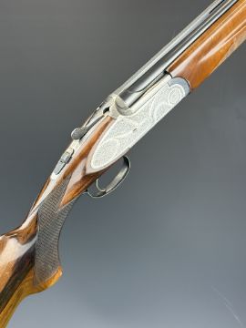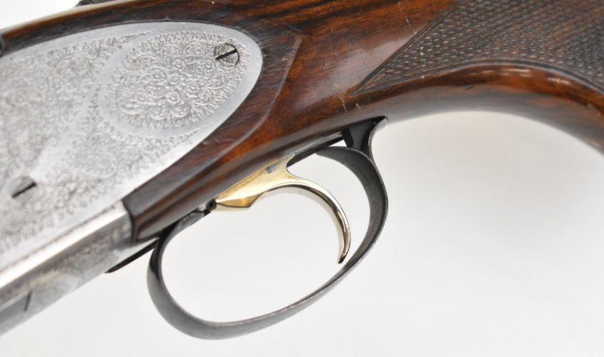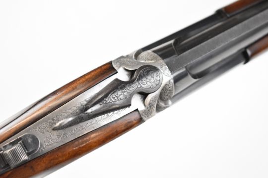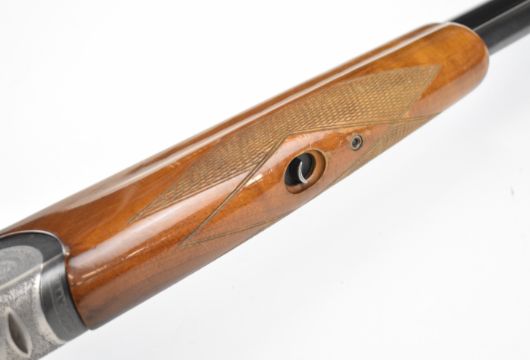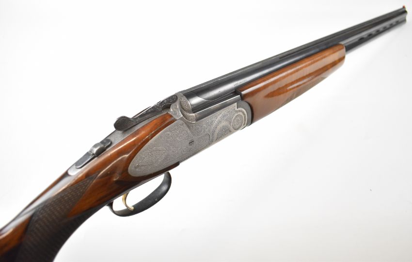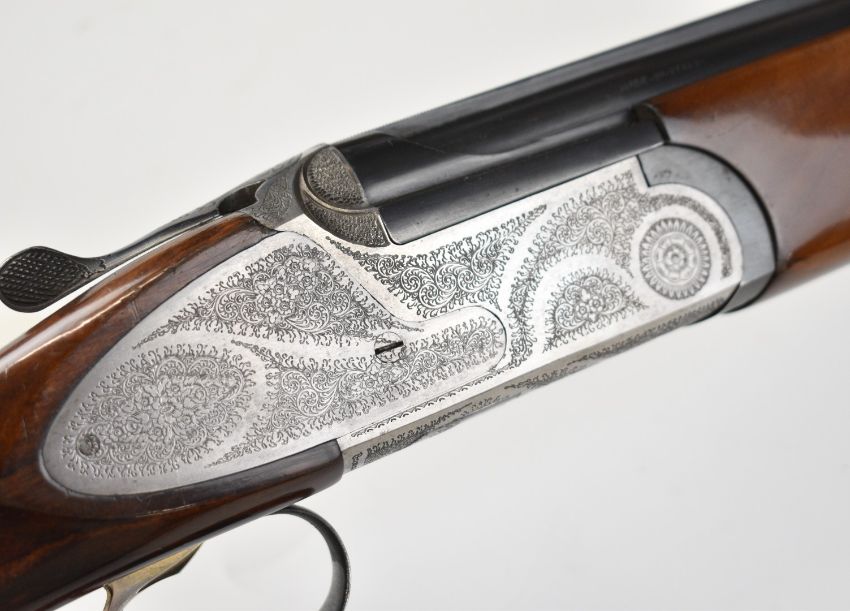 Rizzini 20 bore over and under ejector shotgun with engraved sidelock plates, underside, trigger guard, top plate and thumb lever, chequered semi-pistol grip and forend, single trigger, vented top and central ribs and 27 inch barrels choked improved cylinder and ½, overall length 111cm, length of pull 35cm, serial number 45611. PLEASE NOTE THAT A VALID RELEVANT SHOTGUN CERTIFICATE IS REQUIRED TO VIEW OR PURCHASE THIS LOT AND FOR ALL SHOTGUNS OR RIFLES. PLEASE ENSURE YOU HAVE THE RELEVANT CERTIFICATE BEFORE BIDDING.