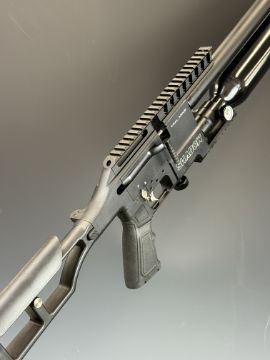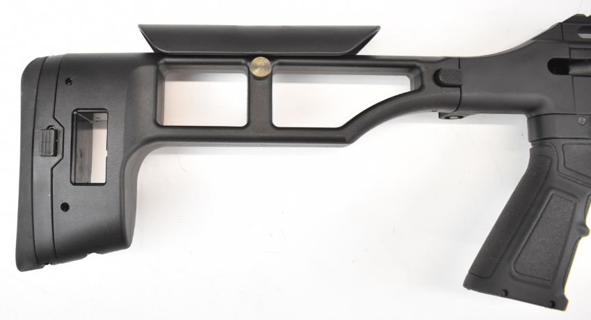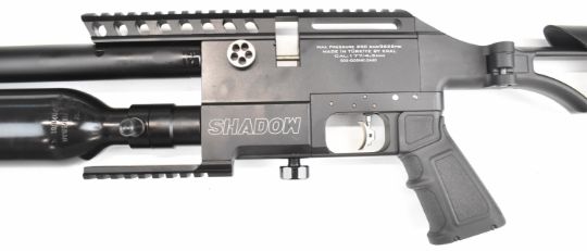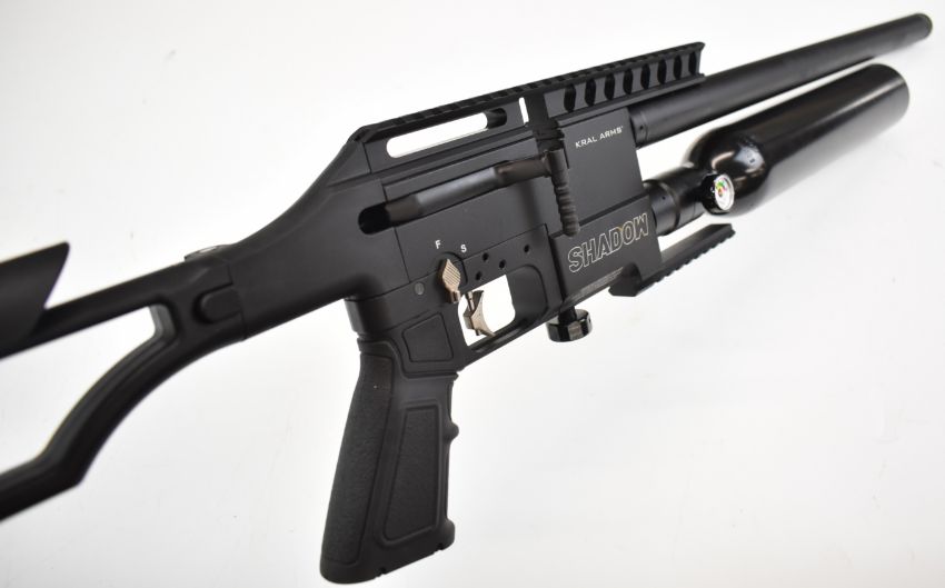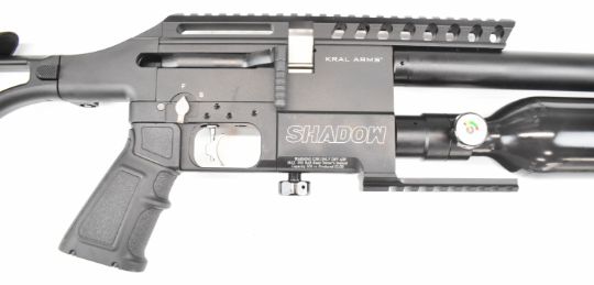 Kral Shadow .177 PCP air rifle with textured pistol grip, folding composite skeleton stock, two multi-shot magazines, adjustable trigger and scope and bi-pod rails, serial number 633-G25HK-2440, in original wheeled carry case with accessories and user instruction manual and outer card sleeve. PLEASE NOTE IF YOU REQUIRE POSTAGE ALL POST 1939 AIR GUNS CAN ONLY BE SENT TO AN RFD.