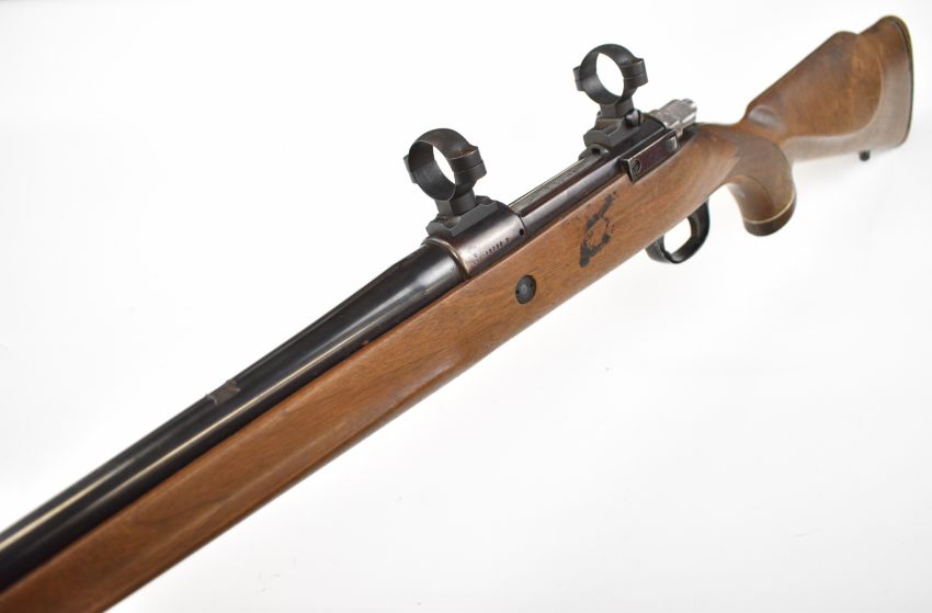 Parker-Hale .270 Winchester bolt-action rifle with chequered semi-pistol grip and forend, raised cheek piece, scope mounts and 22 inch barrel, overall length 107cm, serial number 18758D. PLEASE NOTE THAT A VALID RELEVANT FIREARMS CERTIFICATE IS REQUIRED TO VIEW OR PURCHASE THIS LOT AND FOR ALL SHOTGUNS OR RIFLES PLEASE ENSURE YOU HAVE THE RELEVANT CERTIFICATE BEFORE BIDDING.