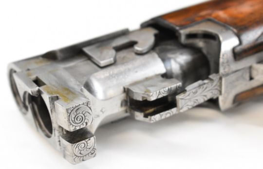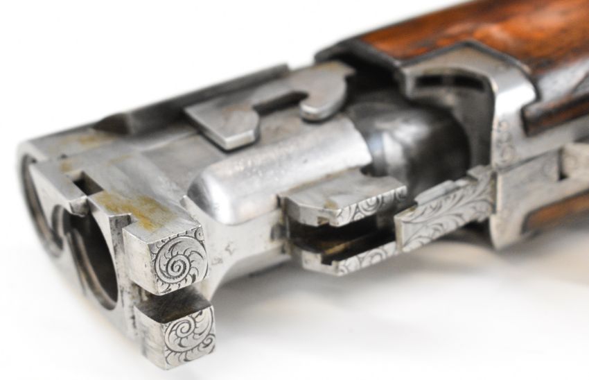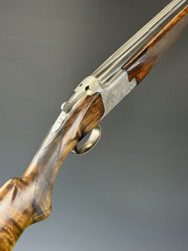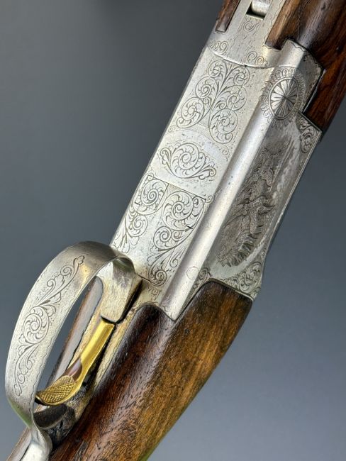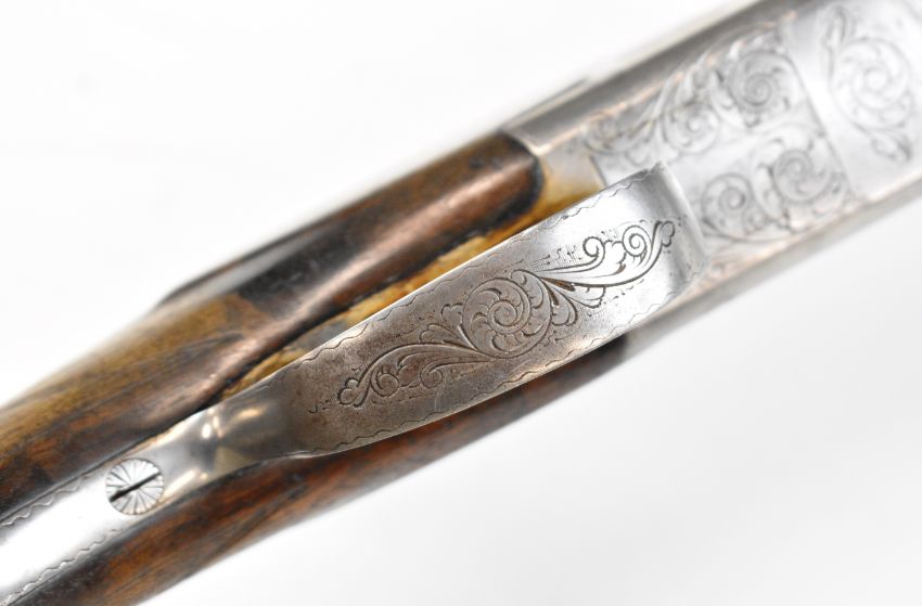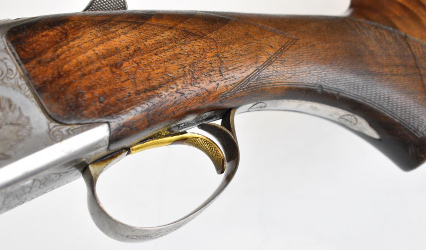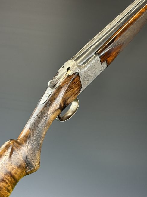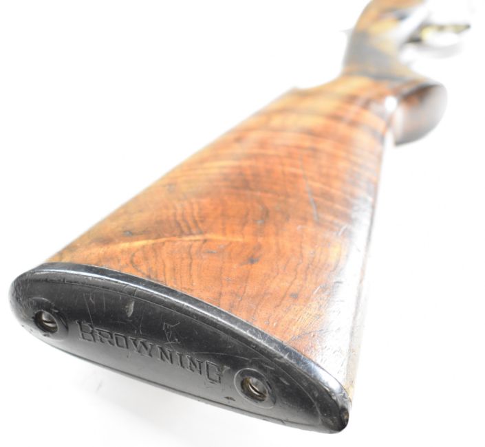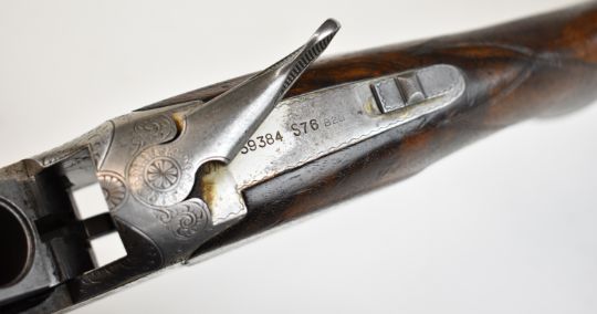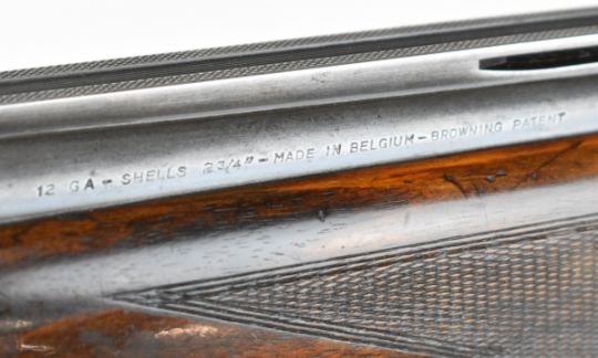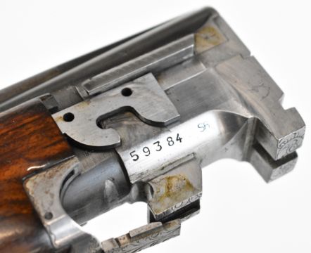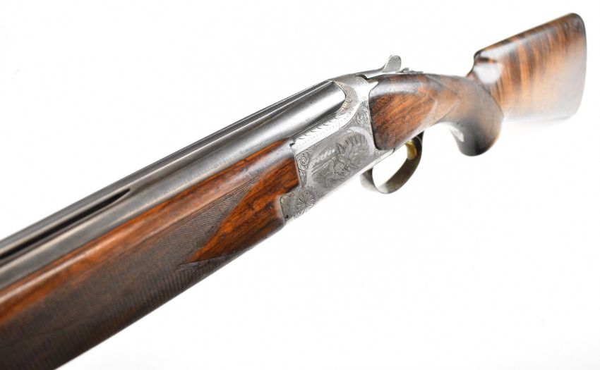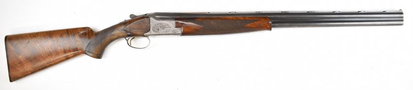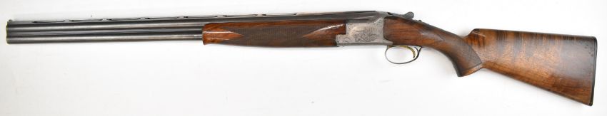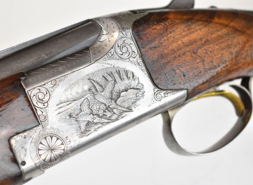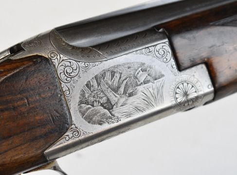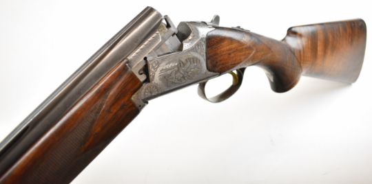Browning B25 B2G 12 bore over and under ejector shotgun with engraved scenes of birds to the locks, scrolling engraving to the underside, trigger guard and thumb lever, chequered semi-pistol grip and forend, single trigger, vented top rib and 27.5 inch barrels choked ¼, overall length 113cm, length of pull 35.5cm, serial number 59384 S76. PLEASE NOTE THAT A VALID RELEVANT SHOTGUN CERTIFICATE IS REQUIRED TO VIEW OR PURCHASE THIS LOT AND FOR ALL SHOTGUNS OR RIFLES. PLEASE ENSURE YOU HAVE THE RELEVANT CERTIFICATE BEFORE BIDDING.