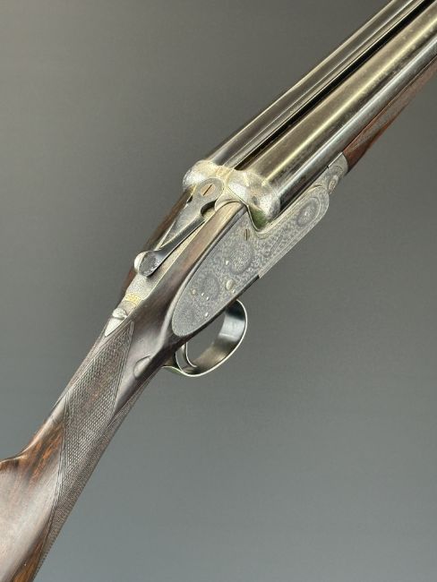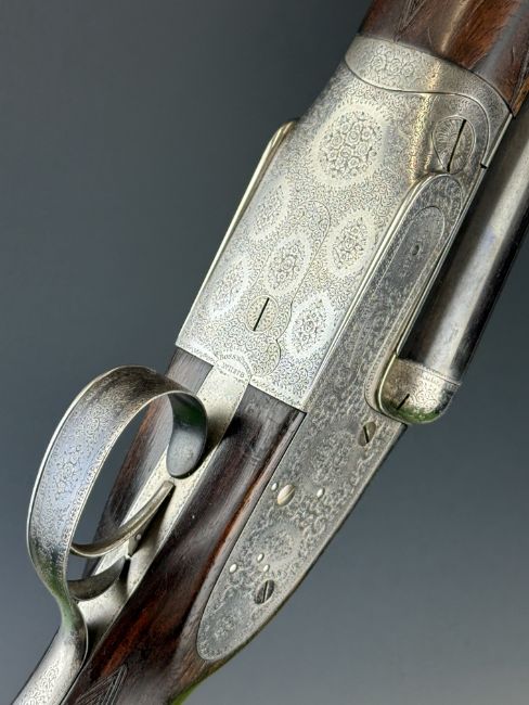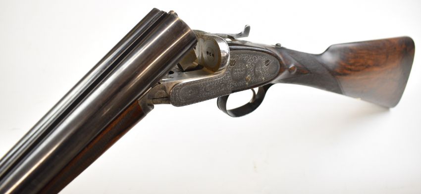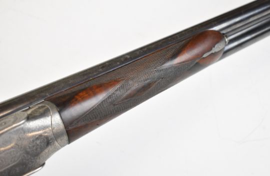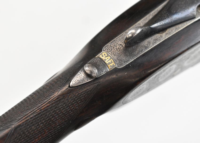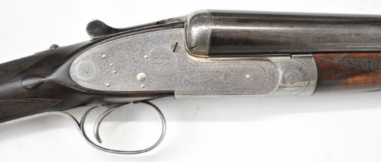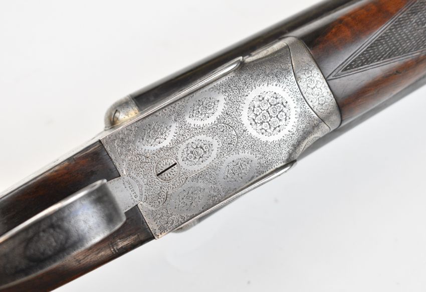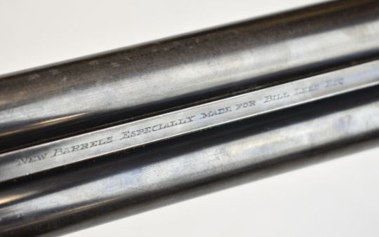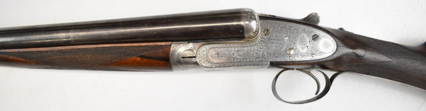 Boss & Co 12 bore assisted-opening sidelock side by side ejector shotgun with rose and scroll engraving to the named locks, underside, top plate, thumb lever and fences, chequered grip and forend, vacant gold cartouche to the underside of the stock, single trigger and 27 inch barrels choked cylinder and improved cylinder and engraved 'New Barrels Especially Made For Bill Lees Esq', overall length 111.5cm, length of pull 36cm, serial number 6721, with copy of the original Boss ledger dating the order to 30th July 1919. PLEASE NOTE THAT A VALID RELEVANT SHOTGUN CERTIFICATE IS REQUIRED TO VIEW OR PURCHASE THIS LOT AND FOR ALL SHOTGUNS OR RIFLES. PLEASE ENSURE YOU HAVE THE RELEVANT CERTIFICATE BEFORE BIDDING.