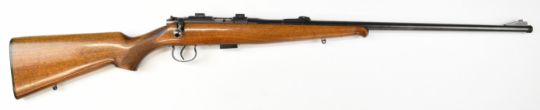 BRNO Model 2 .22 bolt-action rifle with chequered semi-pistol grip, sling and scope mounts, multi-shot magazine and 25 inch barrel, overall length 109cm, serial number 216544. PLEASE NOTE THAT A VALID RELEVANT FIREARMS CERTIFICATE IS REQUIRED TO VIEW OR PURCHASE THIS LOT AND FOR ALL SHOTGUNS OR RIFLES PLEASE ENSURE YOU HAVE THE RELEVANT CERTIFICATE BEFORE BIDDING.