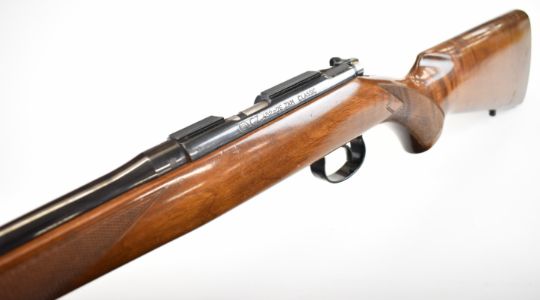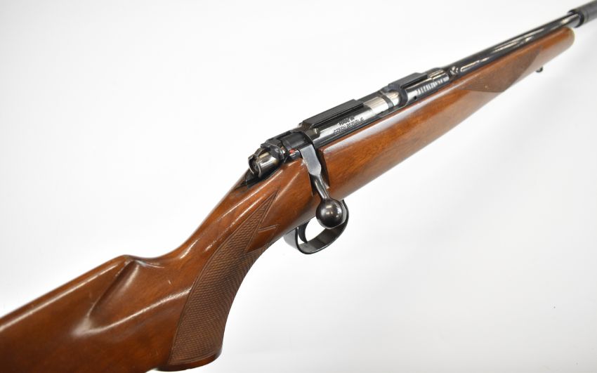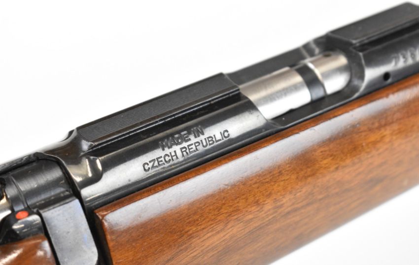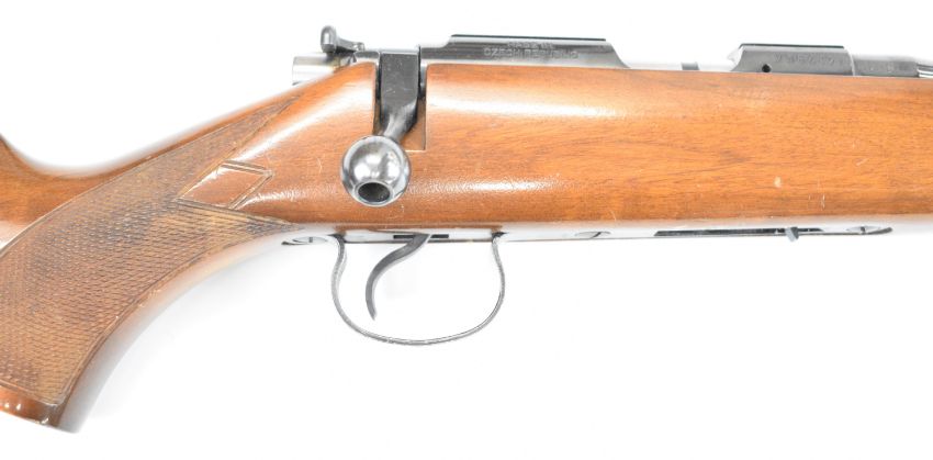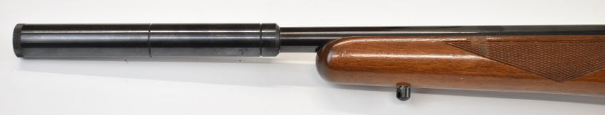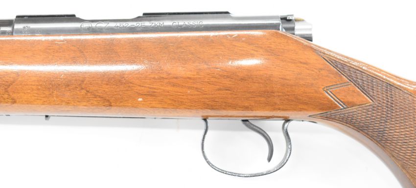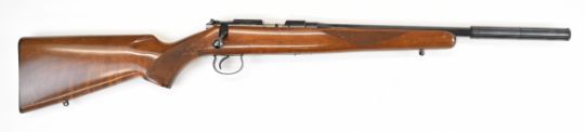 CZ 452-2E ZKM Classic .22 bolt-action rifle with chequered semi-pistol grip and forend, sling mounts, scope rail, sound moderator and 19 inch barrel, overall length 93.5cm, serial number 738619. PLEASE NOTE THAT A VALID RELEVANT FIREARMS CERTIFICATE IS REQUIRED TO HANDLE/PURCHASE THIS ITEM.