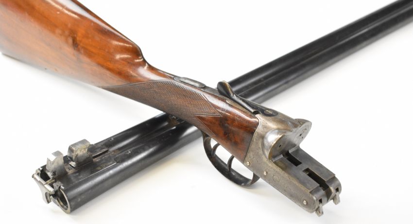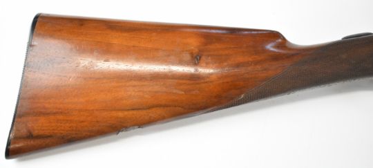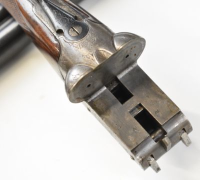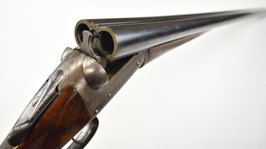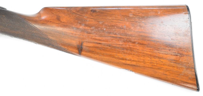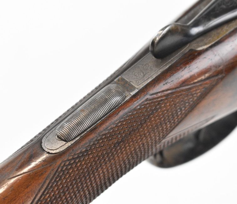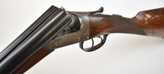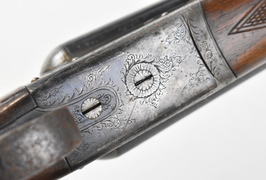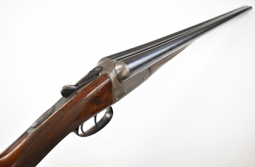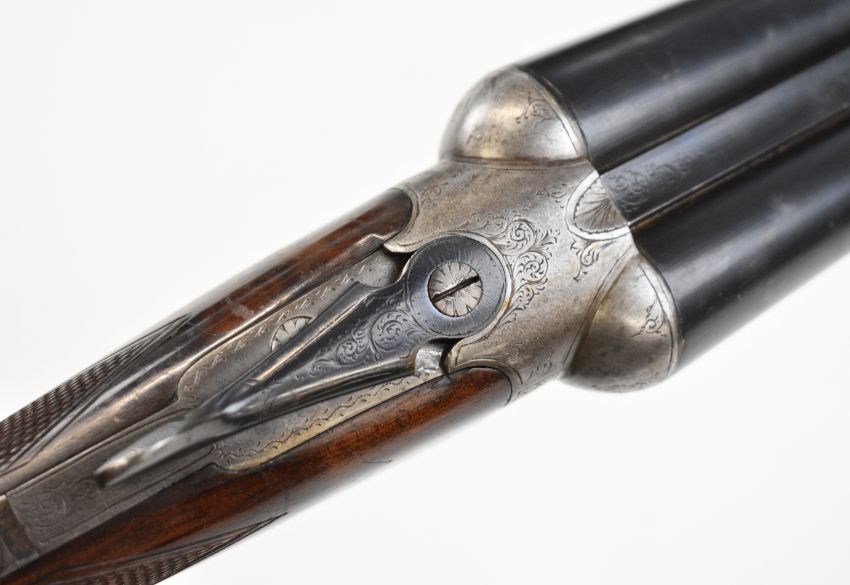 Charles Osbourne & Co 12 bore side by side shotgun with named and engraved locks, engraved underside, trigger guard, top plate, thumb lever and fences, chequered grip and forend, double trigger and named 30 inch barrels choked improved cylinder and ¾, overall length 118cm, length of pull 37cm, serial number 75626. PLEASE NOTE THAT A VALID RELEVANT SHOTGUN CERTIFICATE IS REQUIRED TO VIEW OR PURCHASE THIS LOT AND FOR ALL SHOTGUNS OR RIFLES PLEASE ENSURE YOU HAVE THE RELEVANT CERTIFICATE BEFORE BIDDING.