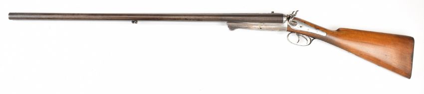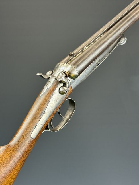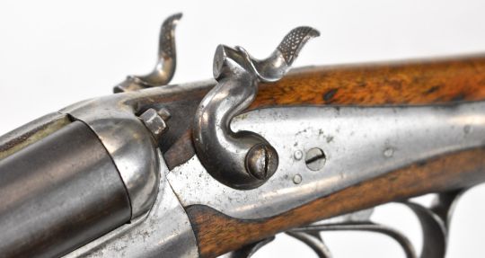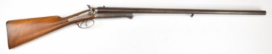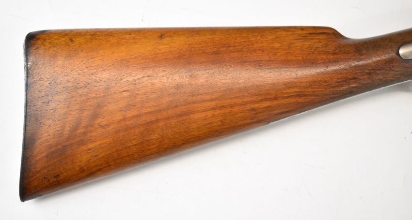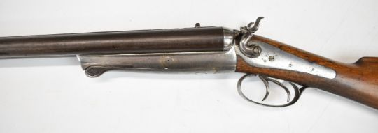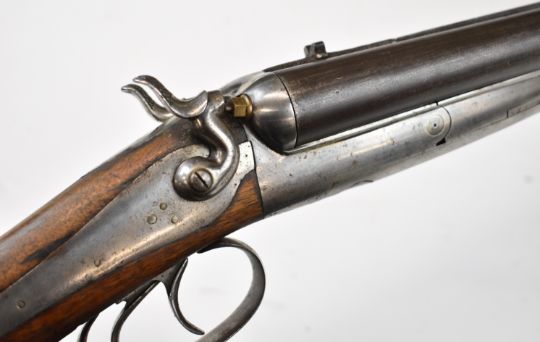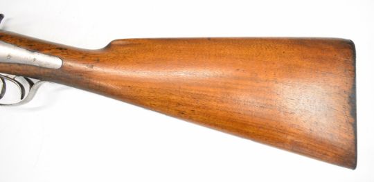 Husqvarna 12 bore side by side hammer action shotgun with double trigger and named 29.5 inch barrels choked cylinder and ¾, overall length 116cm, length of pull 35.5cm, serial number 28745.PLEASE NOTE THAT THIS GUN IS BEING SOLD AS STOCK AND ACTION ONLY AND THAT A VALID RELEVANT RFD CERTIFICATE IS REQUIRED TO VIEW OR PURCHASE THIS LOT.
