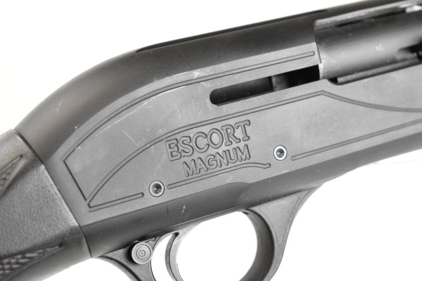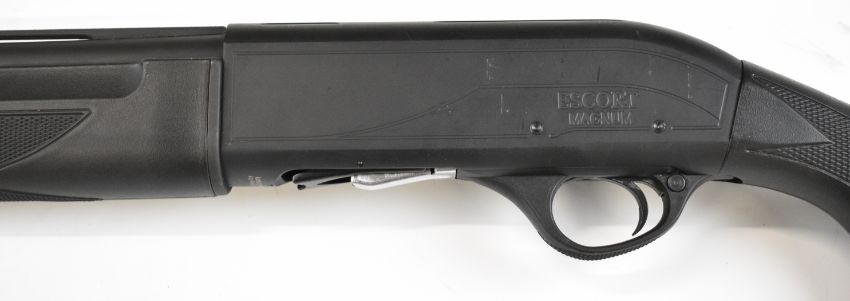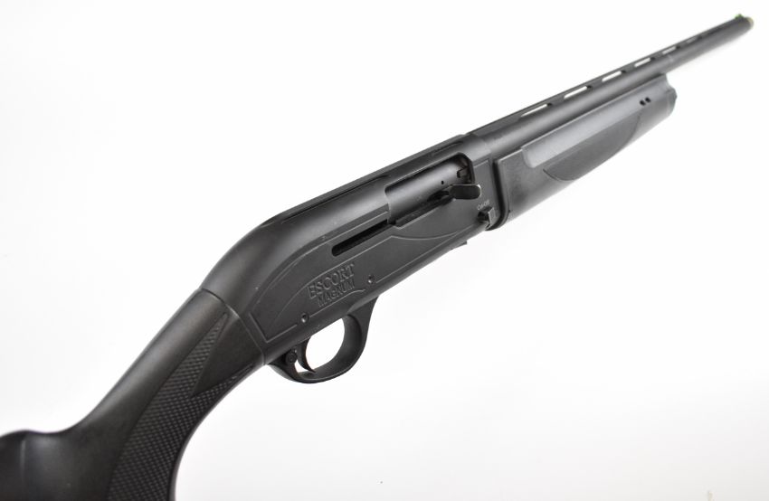 Hatsan Escort Magnum 12 bore 3-shot semi-automatic shotgun with composite stock, chequered semi-pistol grip, vented rib and 24.5 inch multi choke barrel, overall length 115cm, length of pull 37cm, serial number 434367. PLEASE NOTE THAT A VALID RELEVANT SHOTGUN CERTIFICATE IS REQUIRED TO VIEW OR PURCHASE THIS LOT AND FOR ALL SHOTGUNS OR RIFLES. PLEASE ENSURE YOU HAVE THE RELEVANT CERTIFICATE BEFORE BIDDING.