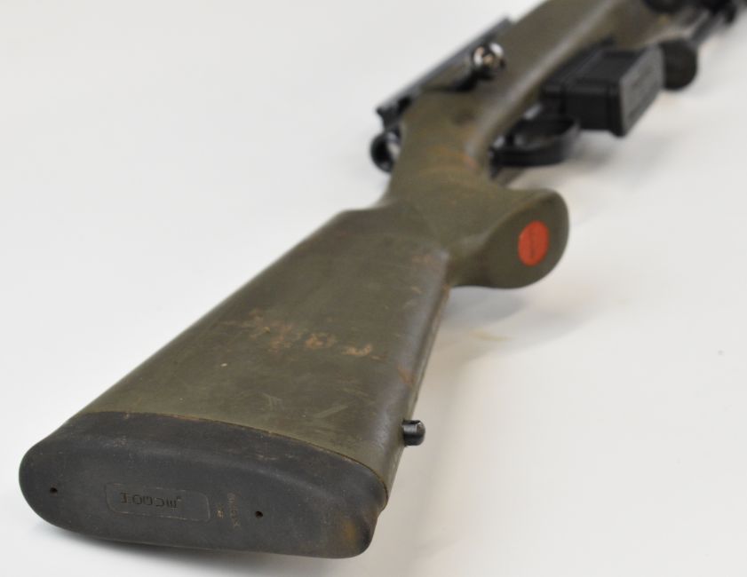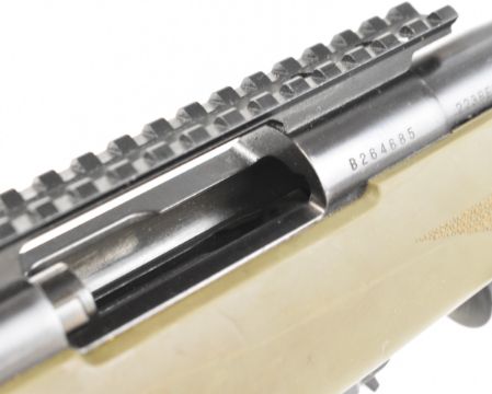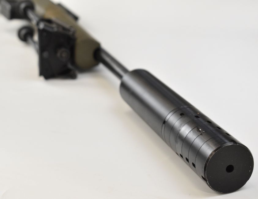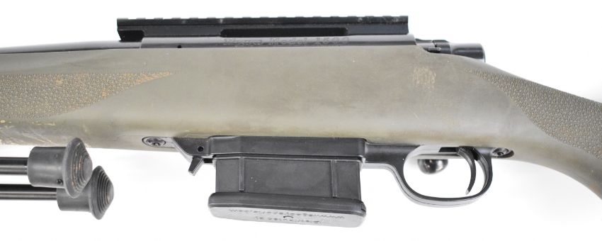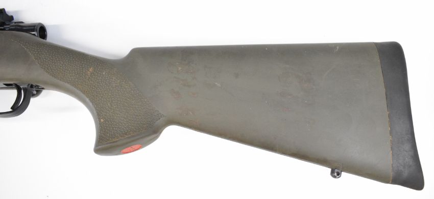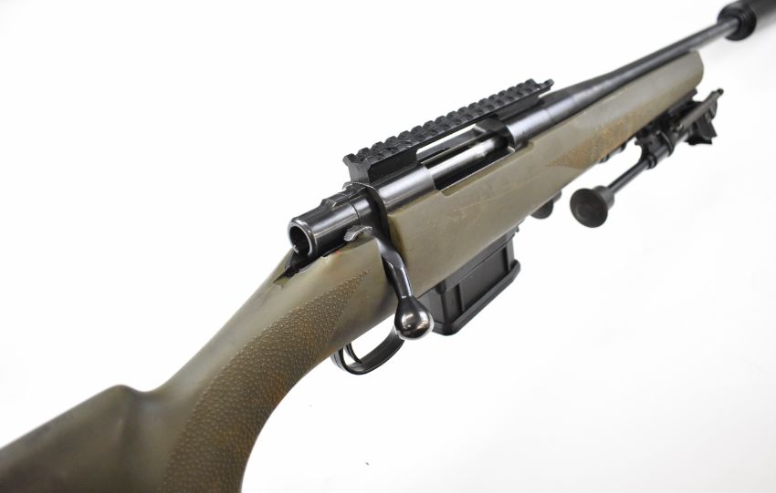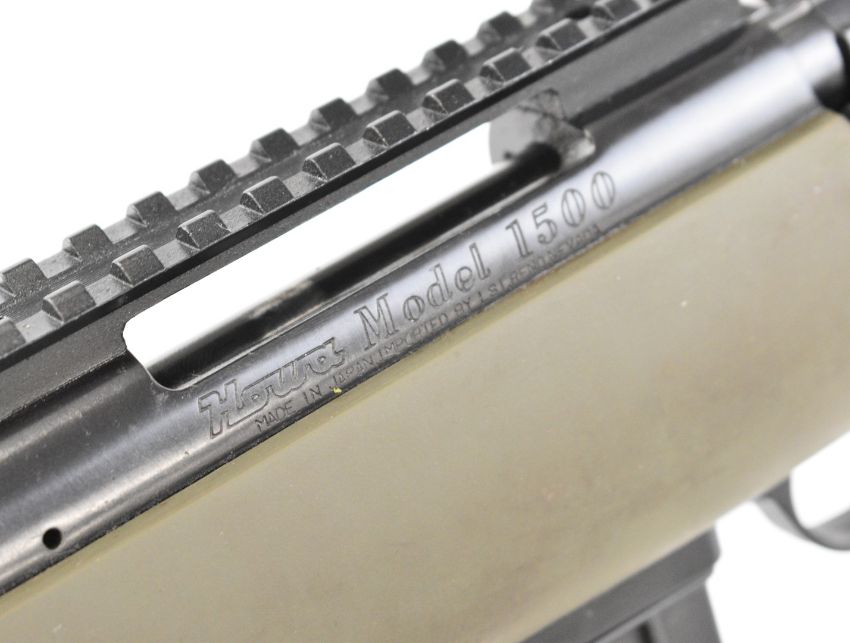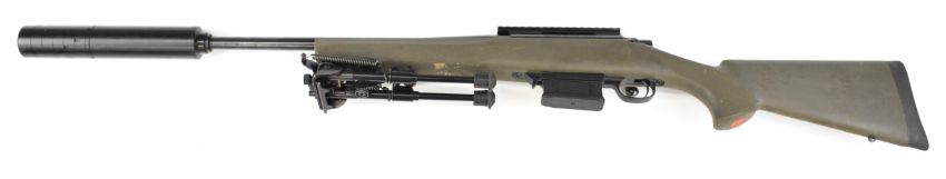 Howa Model 1500 .223 Remington bolt-action rifle with composite stock, textured semi-pistol grip and forend, bi-pod, scope rail, multi-shot magazine, sound moderator and 27 inch barrel, overall length 118.5cm, serial number B264685. PLEASE NOTE THAT A VALID RELEVANT FIREARMS CERTIFICATE IS REQUIRED TO VIEW OR PURCHASE THIS LOT AND FOR ALL SHOTGUNS OR RIFLES. PLEASE ENSURE YOU HAVE THE RELEVANT CERTIFICATE BEFORE BIDDING.