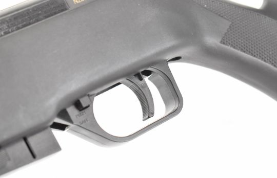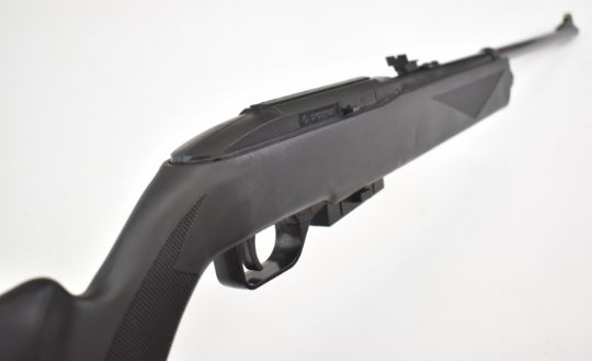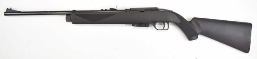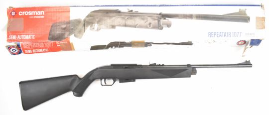 Crosman Repeatair 1077 repeater .177 COair rifle with chequered semi-pistol grip, composite stock and adjustable sights, serial number N23B10407, in original box. PLEASE NOTE: ALL POST - 1939 AIR GUNS CAN ONLY BE SHIPPED TO AN RFD AND NOT TO A HOME ADDRESS.