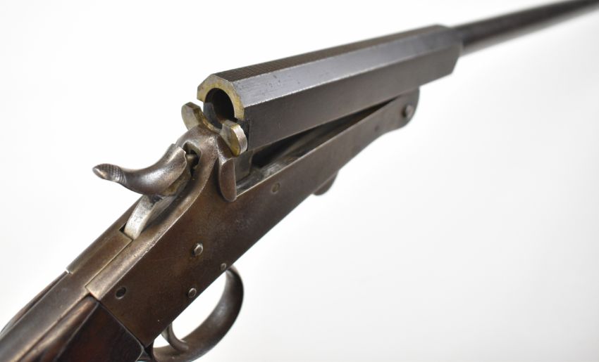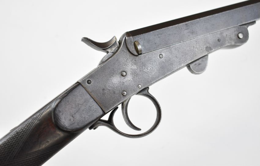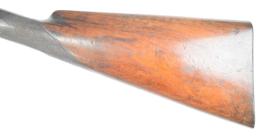 Tranter's patent .410 hammer action shotgun with chequered grip and 26 inch barrel, overall length 105cm, length of pull 37cm, NVSN. PLEASE NOTE THAT A VALID RELEVANT SHOTGUN CERTIFICATE IS REQUIRED TO VIEW OR PURCHASE THIS LOT AND FOR ALL SHOTGUNS OR RIFLES. PLEASE ENSURE YOU HAVE THE RELEVANT CERTIFICATE BEFORE BIDDING.