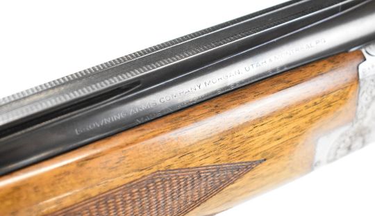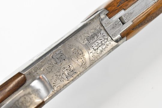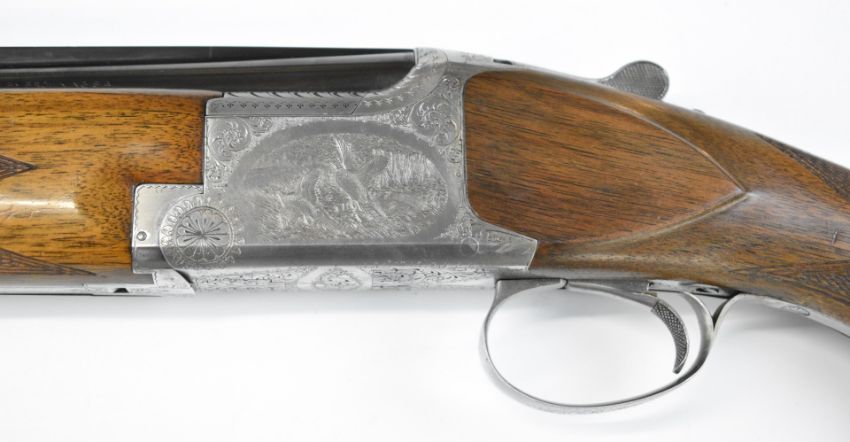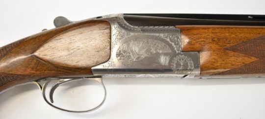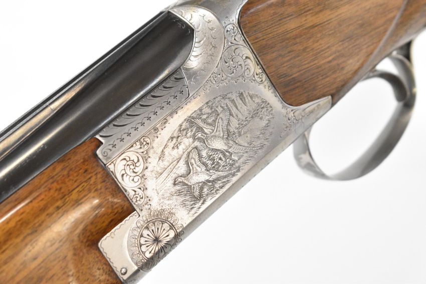 Browning B2G 12 bore over and under ejector shotgun with engraved scenes of birds to the locks, scrolling engraving to the underside, trigger guard and top plate, chequered semi-pistol grip and forend, single trigger, vented top rib and 30 inch barrels choked ¼ and ¾, overall length 119.5cm, length of pull 36cm, serial number 325NT02539. PLEASE NOTE THAT A VALID RELEVANT SHOTGUN CERTIFICATE IS REQUIRED TO VIEW OR PURCHASE THIS LOT AND FOR ALL SHOTGUNS OR RIFLES. PLEASE ENSURE YOU HAVE THE RELEVANT CERTIFICATE BEFORE BIDDING.