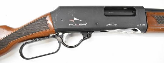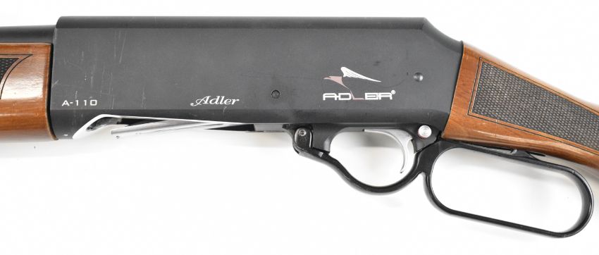 Adler A-110 12 bore 10-shot underlever-action FAC shotgun with ornately chequered grip and forend, sling mounts and 24 inch multi-choke barrel, overall length 114cm, length of pull 36cm, serial number 15-10117. PLEASE NOTE THAT A VALID RELEVANT FIREARMS CERTIFICATE IS REQUIRED TO VIEW OR PURCHASE THIS LOT AND FOR ALL SHOTGUNS OR RIFLES. PLEASE ENSURE YOU HAVE THE RELEVANT CERTIFICATE BEFORE BIDDING.