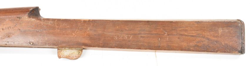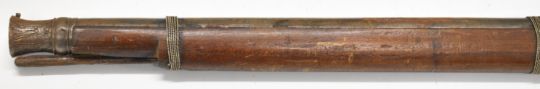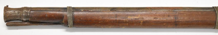 Turkish, Ottoman or Middle Eastern matchlock gun with white metal wire barrel bands and 53 inch barrel, overall length 184.5cm.