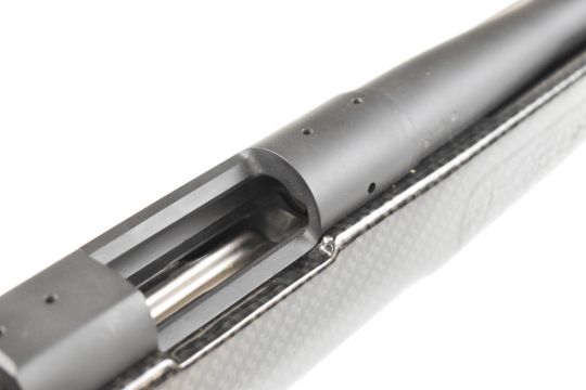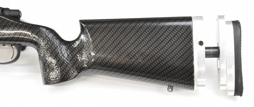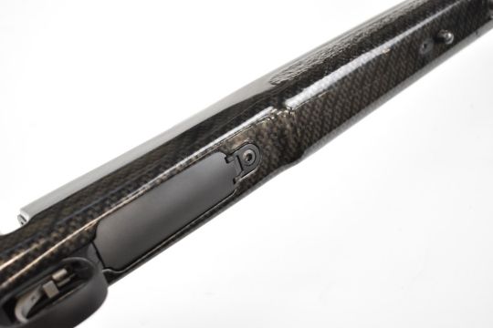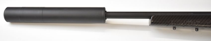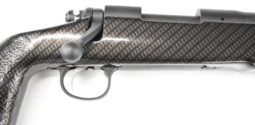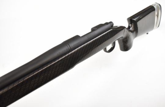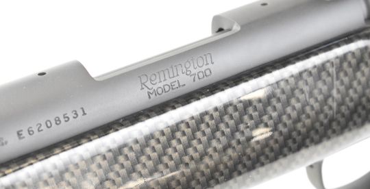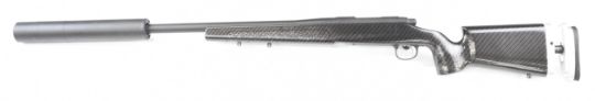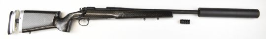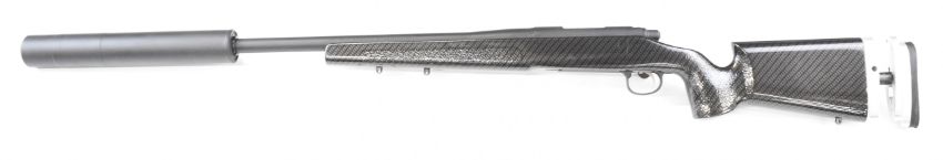 Remington Model .308 Winchester bolt-action rifle with custom carbon fiber effect stock, textured semi-pistol grip, adjustable butt plate and trigger, sound moderator and 31 inch barrel, overall length 130.5cm, serial number E6208531. PLEASE NOTE THAT A VALID RELEVANT FIREARMS CERTIFICATE IS REQUIRED TO VIEW OR PURCHASE THIS LOT AND FOR ALL SHOTGUNS OR RIFLES PLEASE ENSURE YOU HAVE THE RELEVANT CERTIFICATE BEFORE BIDDING.