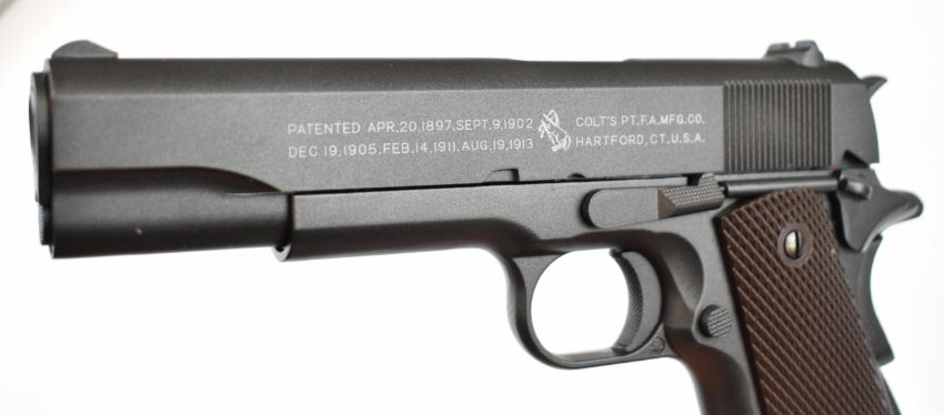 Colt M1911 A1 100th Anniversary 1911-2011 Still Making History semi-automatic 6mm COairsoft pistol with chequered grips and 17 shot magazine, serial number 16C11304, in original box with paperwork and accessories.