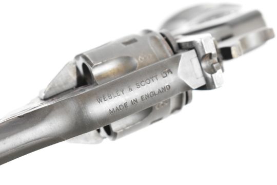 Deactivated Webley & Scott Mark IV .38 six-shot Hong Kong Police service revolver with named and chequered composite grips, fixed sights and 4 inch barrel, overall length 26cm, serial number 63714, with deactivation certificate dated 06/11/2025.