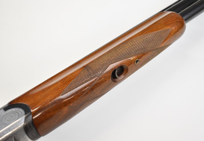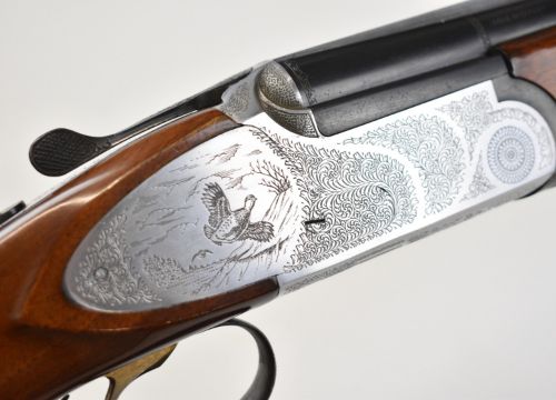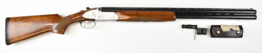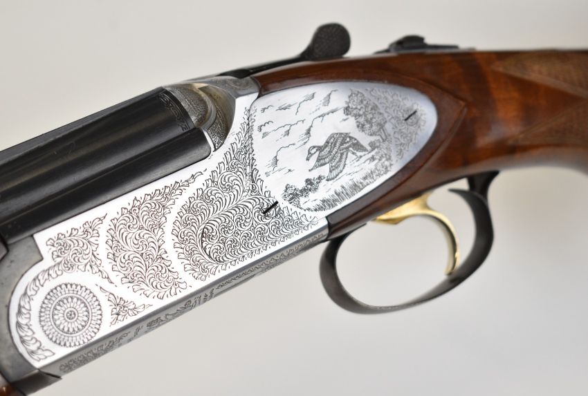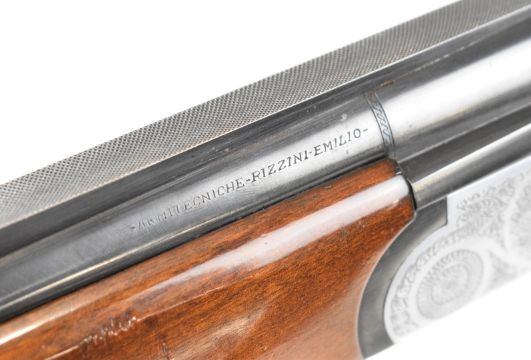 Rizzini 12 bore over and under ejector shotgun with engraved scenes of birds to the sidelock plates and underside, engraved trigger guard, top plate and thumb lever, chequered semi-pistol grip and forend, single trigger, vented top and central ribs and 27 inch multi-choke barrels, overall length 114cm, length of pull 36.5cm, serial number 51181, with two additional chokes and choke key. PLEASE NOTE THAT A VALID RELEVANT SHOTGUN CERTIFICATE IS REQUIRED TO VIEW OR PURCHASE THIS LOT AND FOR ALL SHOTGUNS OR RIFLES. PLEASE ENSURE YOU HAVE THE RELEVANT CERTIFICATE BEFORE BIDDING.