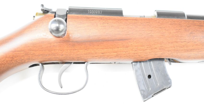 Puma Hunter .22 bolt-action rifle with semi-pistol grip, multi-shot magazine, sling mounts, adjustable sights and 22.5 inch barrel, overall length 102.5cm, serial number 1050007. PLEASE NOTE THAT A VALID RELEVANT FIREARMS CERTIFICATE IS REQUIRED TO VIEW OR PURCHASE THIS LOT AND FOR ALL SHOTGUNS OR RIFLES. PLEASE ENSURE YOU HAVE THE RELEVANT CERTIFICATE BEFORE BIDDING.