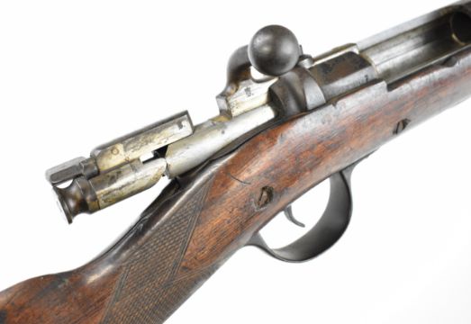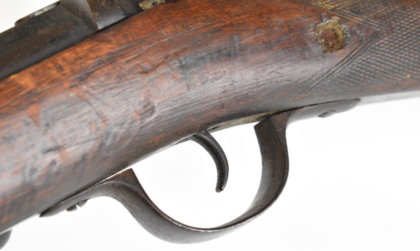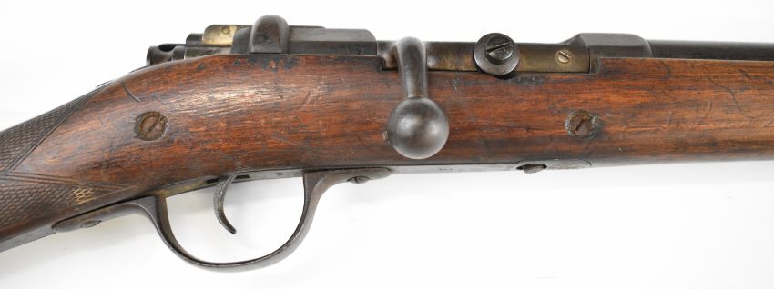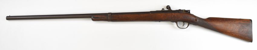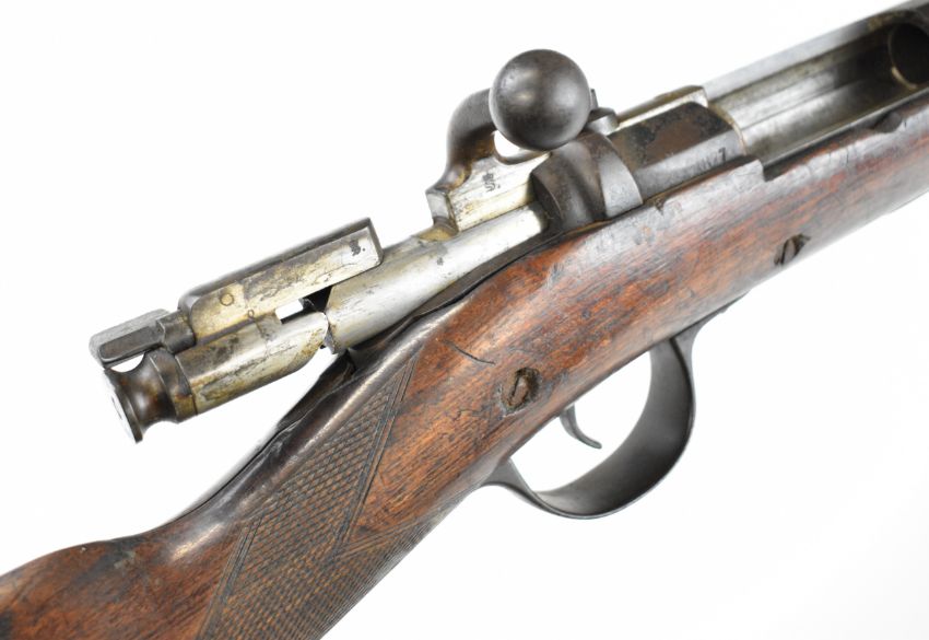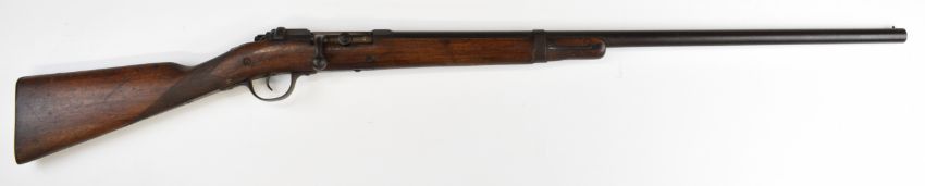 Belgian 12 bore bolt-action shotgun with chequered grip and 29.75 inch barrel choked cylinder, overall length 124cm, length of pull 34cm, serial number 9799D. PLEASE NOTE THAT A VALID RELEVANT SHOTGUN CERTIFICATE IS REQUIRED TO VIEW OR PURCHASE THIS LOT AND FOR ALL SHOTGUNS OR RIFLES PLEASE ENSURE YOU HAVE THE RELEVANT CERTIFICATE BEFORE BIDDING