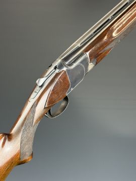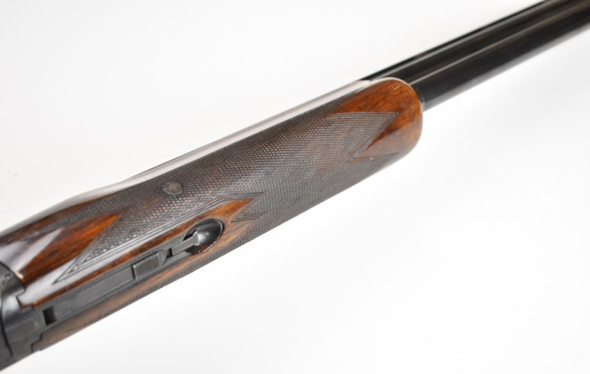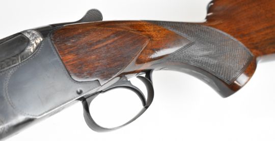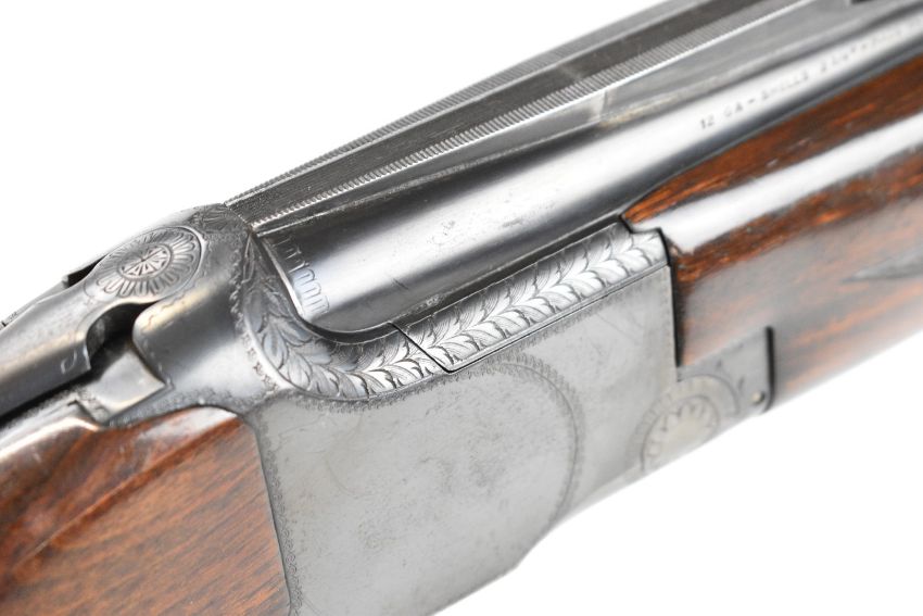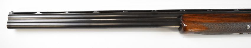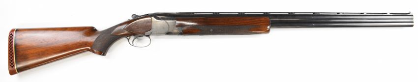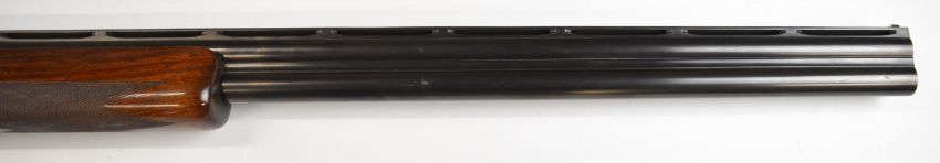 Browning B125 12 bore over and under ejector shotgun with border engraved locks, underside, trigger guard top plate and thumb lever, chequered semi-pistol grip and forend, single trigger, vented top rib and 30 inch barrels choked ½, overall length 119.5cm, length of pull 36.5cm, serial number 236559. PLEASE NOTE THAT A VALID RELEVANT SHOTGUN CERTIFICATE IS REQUIRED TO VIEW OR PURCHASE THIS LOT AND FOR ALL SHOTGUNS OR RIFLES. PLEASE ENSURE YOU HAVE THE RELEVANT CERTIFICATE BEFORE BIDDING.