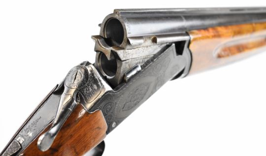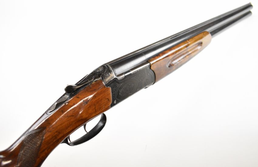 Zabala 12 bore over and under shotgun with engraved locks, underside and thumb lever, chequered semi-pistol grip and forend, double trigger, vented top rib and 25.75 inch barrels choked ¼ and improved cylinder, overall length 108cm, length of pull 37cm, serial number 57245. PLEASE NOTE THAT A VALID RELEVANT SHOTGUN CERTIFICATE IS REQUIRED TO VIEW OR PURCHASE THIS LOT AND FOR ALL SHOTGUNS OR RIFLES PLEASE ENSURE YOU HAVE THE RELEVANT CERTIFICATE BEFORE BIDDING.