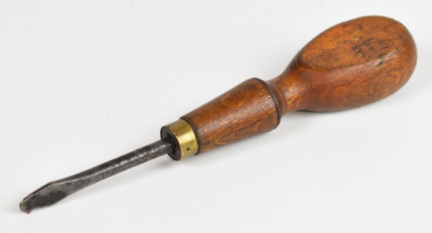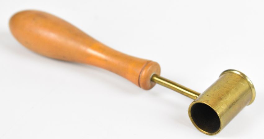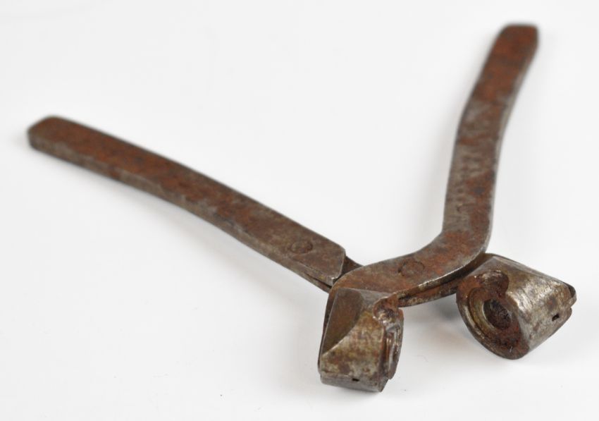 Seven gun related tools including bullet moulds, one pair stamped 'ESES CO', James Dixon & Sons 1105 powder measure, 20 bore wad punch etc.