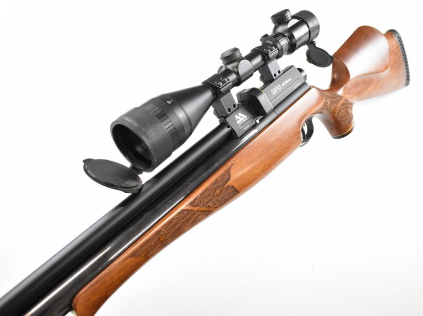 Air Arms S510 Extra FAC .22 PCP air rifle with textured semi-pistol grip and forend, raised cheek piece, 10-shot magazine, Richter Optik 3-9x50 A0E scope and sound moderator, serial number 108893. PLEASE NOTE THAT A VALID RELEVANT FIREARMS CERTIFICATE IS REQUIRED TO VIEW OR PURCHASE THIS LOT AND FOR ALL SHOTGUNS OR RIFLES. PLEASE ENSURE YOU HAVE THE RELEVANT CERTIFICATE BEFORE BIDDING.