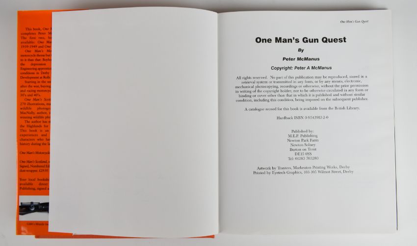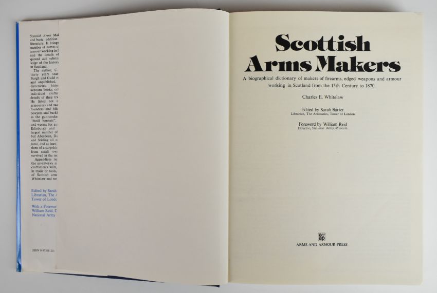 [Gunsmiths] London Gunmakers by Nigel Brown published Christie's 1998. British Gunmakers Their Trade Cards, Cases and Equipment 1760-1860 by Neal & Back 1980. Scottish Arms Makers by Charles Whitelaw 1977. Birmingham Gunmakers by Douglas Tate A Complete Overview of the Birmingham Gun Trade and Its History as well as a listing of the Birmingham Gunmakers 1997. English Gunmakers by De Witt Bailey and Douglas  A. Nie 1978. One Man’s Gun Quest: 50 Years of Collecting by Peter McManus signed on free endpaper, all hardbound (6)