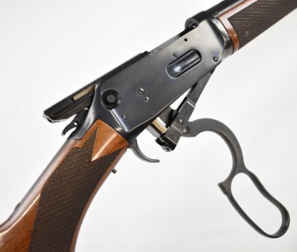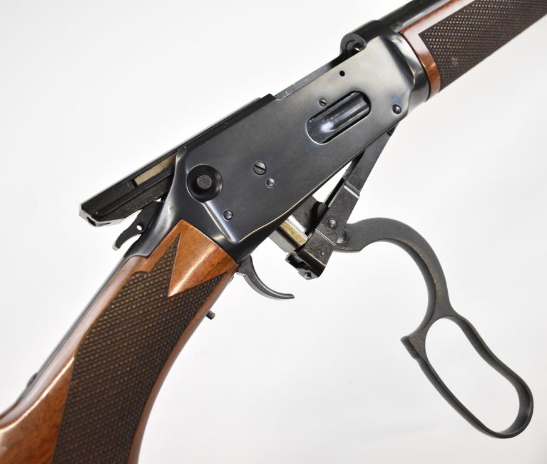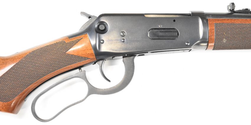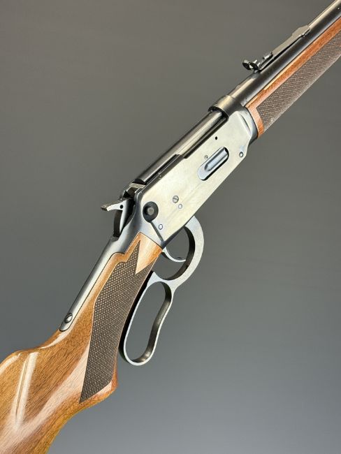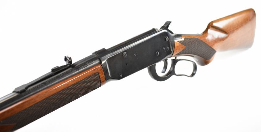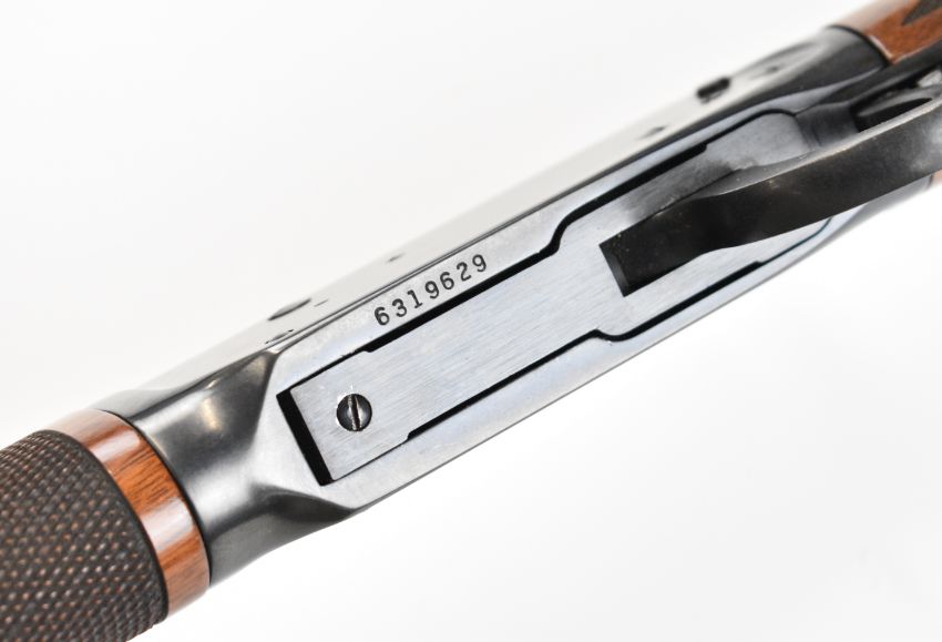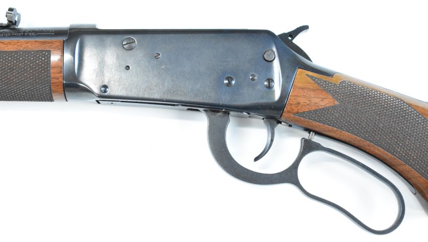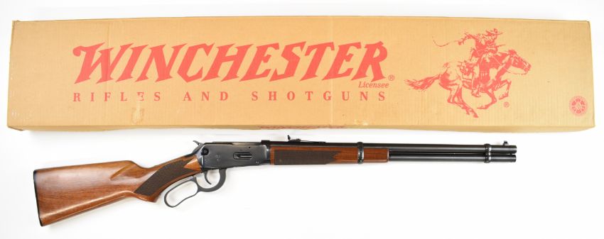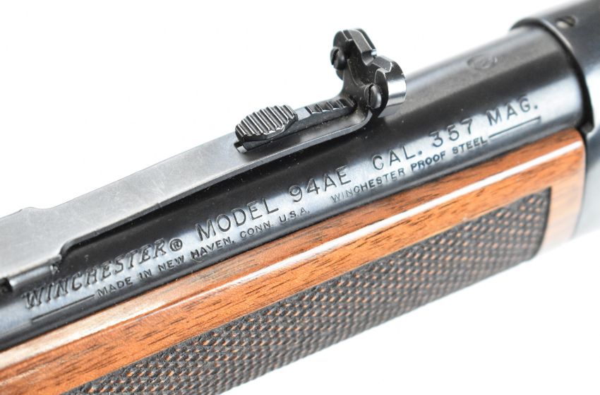 Winchester Model 94AE .38/ 357 underlever action rifle with chequered grip and forend, adjustable sights and 20 inch barrel, overall length 96.5cm, serial number 6319629, in original box with instruction manual and related paperwork. PLEASE NOTE THAT A VALID RELEVANT FIREARMS CERTIFICATE IS REQUIRED TO VIEW OR PURCHASE THIS LOT AND FOR ALL SHOTGUNS OR RIFLES PLEASE ENSURE YOU HAVE THE RELEVANT CERTIFICATE BEFORE BIDDING.