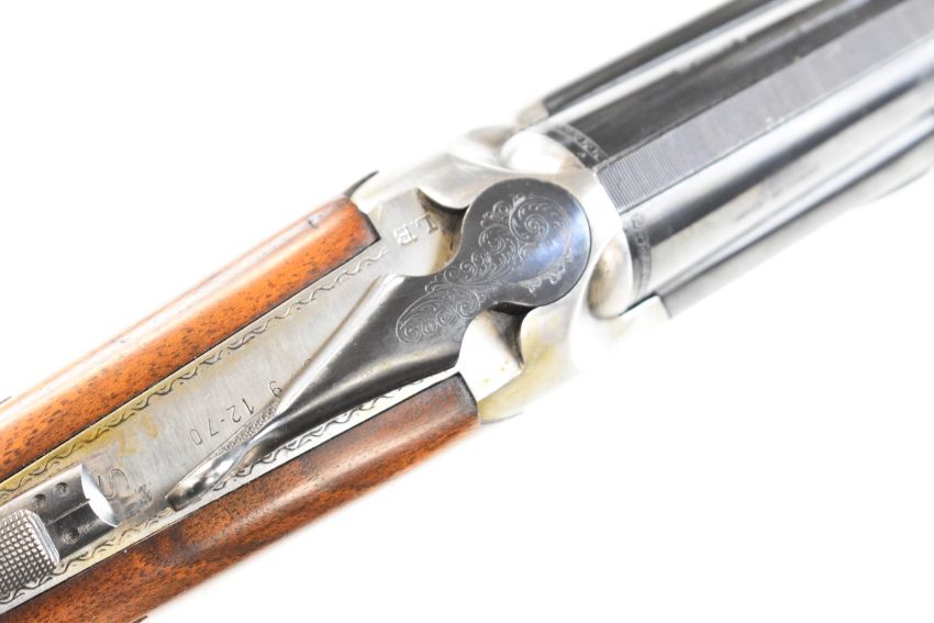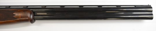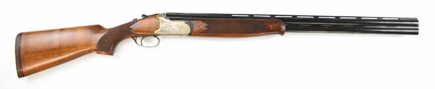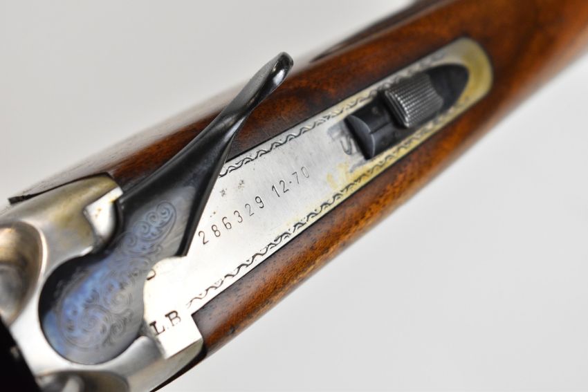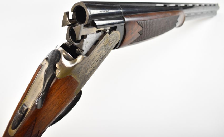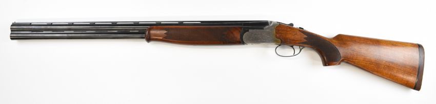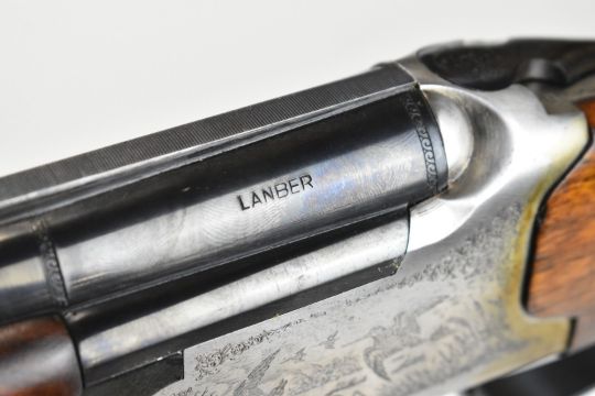Lanber 12 bore over and under ejector shotgun with engraved scenes of birds to the locks and underside, engraved trigger guard, top plate and thumb lever, chequered semi-pistol grip and forend, single trigger, vented top and central ribs and 27.5 inch multi-choke barrels, overall length 113cm, length of pull 36.5cm, serial number 286329. PLEASE NOTE THAT A VALID RELEVANT SHOTGUN CERTIFICATE IS REQUIRED TO VIEW OR PURCHASE THIS LOT AND FOR ALL SHOTGUNS OR RIFLES. PLEASE ENSURE YOU HAVE THE RELEVANT CERTIFICATE BEFORE BIDDING.