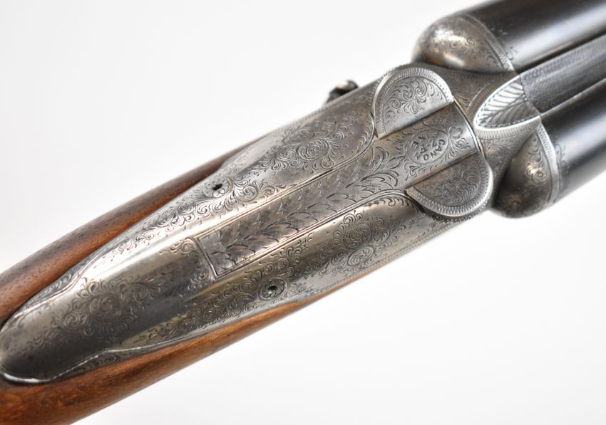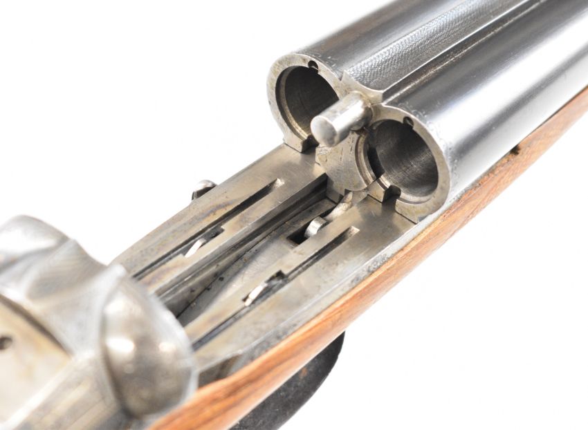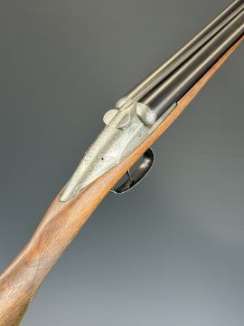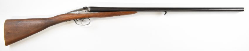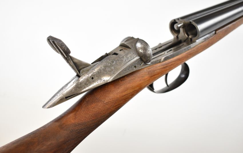 Darne style 16 bore side by side shotgun with engraved sliding action, engraved top lever marked 'ZF Canon Fixe', chequered grip and forend, double trigger and 27.5 inch barrels, overall length 111cm, length of pull 36.5cm, serial number 419. PLEASE NOTE THAT A VALID RELEVANT SHOTGUN CERTIFICATE IS REQUIRED TO VIEW OR PURCHASE THIS LOT AND FOR ALL SHOTGUNS OR RIFLES. PLEASE ENSURE YOU HAVE THE RELEVANT CERTIFICATE BEFORE BIDDING.