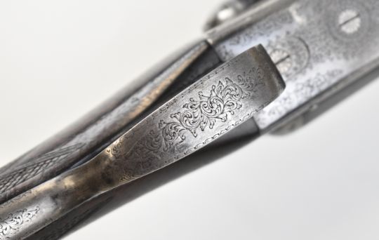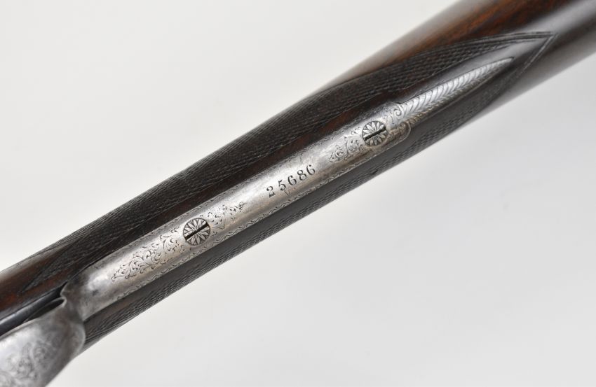 Cogswell & Harrison Ltd Avant Tout 12 bore side by side ejector shotgun with engraved locks, underside, trigger guard, top plate, thumb lever and fences, chequered grip and forend, engraved cartouche to the underside of the stock, double trigger and named 30 inch barrels choked improved cylinder and ½, overall length 121.5cm, length of pull 40cm, serial number 25686. PLEASE NOTE THAT A VALID RELEVANT SHOTGUN CERTIFICATE IS REQUIRED TO VIEW OR PURCHASE THIS LOT AND FOR ALL SHOTGUNS OR RIFLES PLEASE ENSURE YOU HAVE THE RELEVANT CERTIFICATE BEFORE BIDDING.