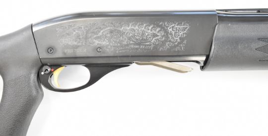 Remington 11-87 Premier 12 bore left handed 10-shot semi-automatic FAC shotgun with composite stock, textured pistol grip, engraved action, vented rib and 28 inch multi-choke barrel, overall length 121.5cm, length of pull 35cm, serial number 835098, in original box with original wooden stock and forend, spare chokes and accessories. PLEASE NOTE THAT A VALID RELEVANT FIREARMS CERTIFICATE IS REQUIRED TO VIEW OR PURCHASE THIS LOT AND FOR ALL SHOTGUNS OR RIFLES. PLEASE ENSURE YOU HAVE THE RELEVANT CERTIFICATE BEFORE BIDDING.