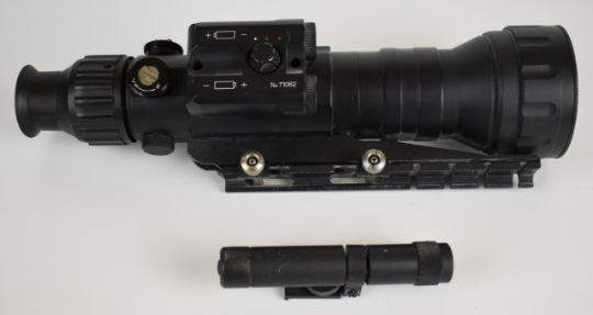 Dedal-NV gun or rifle night vision scope serial number 71062 with additional laser sight.