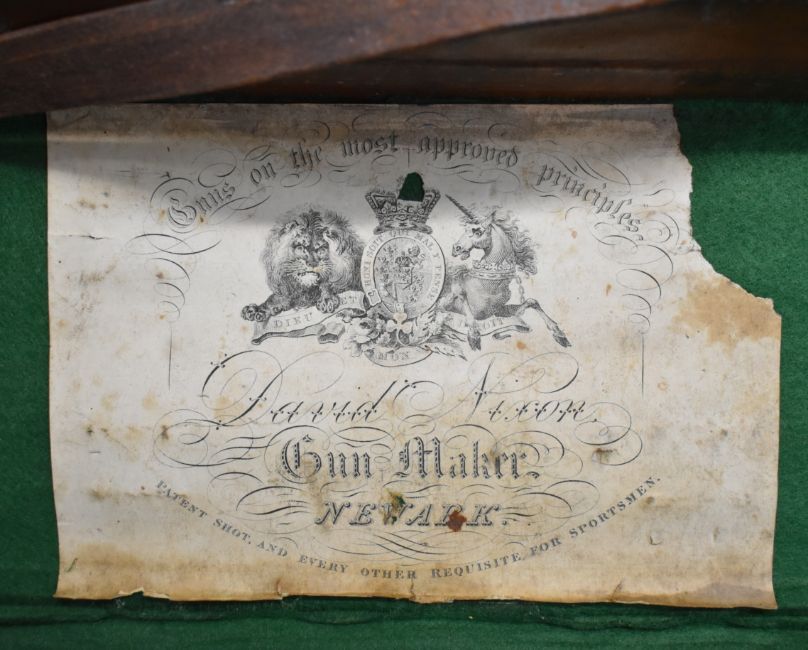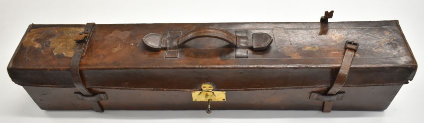 Leather double shotgun or rifle motor case with 'David Nixon Gun Maker Newark Guns on the most approved principles' label to the inside of the lid, remnants of Charles Maleham label to the exterior and brass lock, 86 x 18 x 15cm.