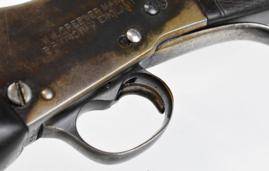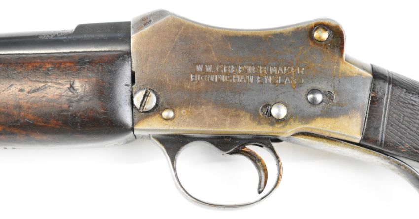 W W Greener Greener's GP Gun Martini underlever action 12 bore single barrelled shotgun with named lock, chequered grip and forend and 30 inch barrel choked ¼, overall length 117.5cm, length of pull 37cm, serial number 35779. PLEASE NOTE THAT A VALID RELEVANT SHOTGUN CERTIFICATE IS REQUIRED TO VIEW OR PURCHASE THIS LOT AND FOR ALL SHOTGUNS OR RIFLES. PLEASE ENSURE YOU HAVE THE RELEVANT CERTIFICATE BEFORE BIDDING.