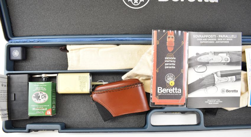 Beretta 682 Gold Sporting 12 bore over and under ejector shotgun with gold inlaid naming, chequered semi-pistol grip and forend, vented top and central ribs, adjustable single trigger and named 30.5 inch multi-choke barrels, overall length 123.5cm, length of pull 38cm, serial number H18855B, in original fitted case with Beretta slip, three additional chokes, choke key, accessories, owner's manual, related paperwork, dust bags etc. PLEASE NOTE THAT A VALID RELEVANT SHOTGUN CERTIFICATE IS REQUIRED TO VIEW OR PURCHASE THIS LOT AND FOR ALL SHOTGUNS OR RIFLES PLEASE ENSURE YOU HAVE THE RELEVANT CERTIFICATE BEFORE BIDDING