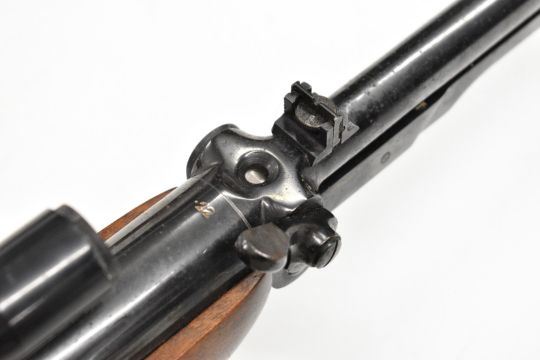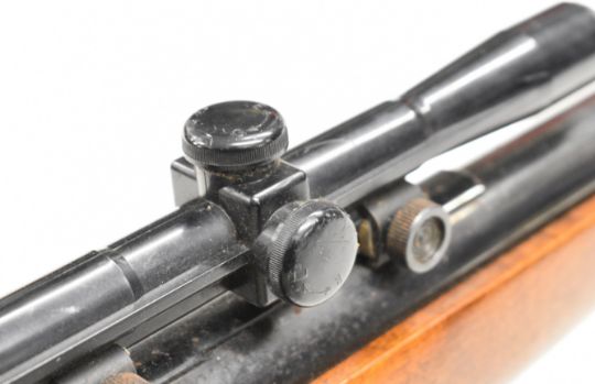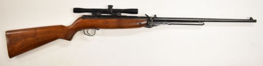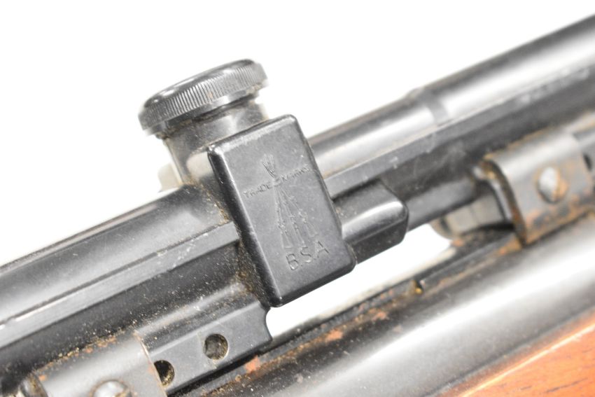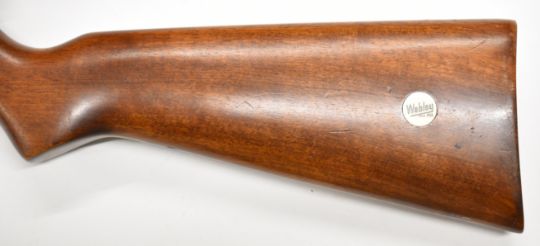 Webley Mark 3 .22 under-lever air rifle with plaque inset to the stock, semi-pistol grip, adjustable sights and BSA scope, serial number 40681. PLEASE NOTE: ALL POST - 1939 AIR GUNS CAN ONLY BE SHIPPED TO AN RFD AND NOT TO A HOME ADDRESS.
