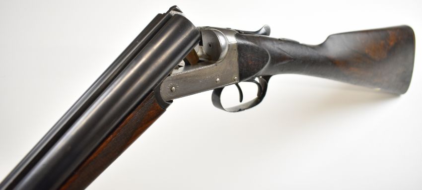 Army & Navy CS Ltd 16 bore side by side ejector shotgun with named and line engraved locks, line engraved underside, trigger guard, top plate, thumb lever and fences, chequered grip and forend, vacant cartouche to the underside of the stock, double trigger and indistinctly named 30 inch barrels, overall length 117.5cm, length of pull 37.5cm, serial number 16747. PLEASE NOTE THAT A VALID RELEVANT SHOTGUN CERTIFICATE IS REQUIRED TO VIEW OR PURCHASE THIS LOT AND FOR ALL SHOTGUNS OR RIFLES PLEASE ENSURE YOU HAVE THE RELEVANT CERTIFICATE BEFORE BIDDING.