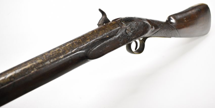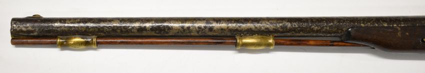 Indistinctly named percussion converted from flintlock hammer action sporting gun with 'Stinton' to the lock, brass trigger guard and butt plate, wooden ram-rod and 25 inch smooth bored barrel, overall length 103.5cm.
