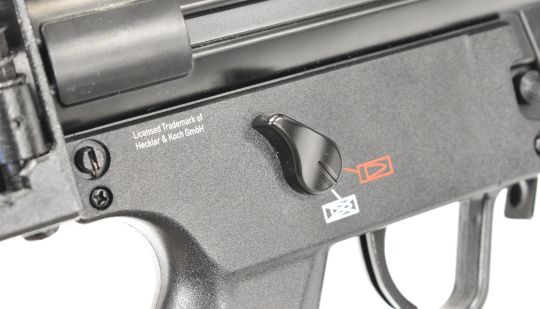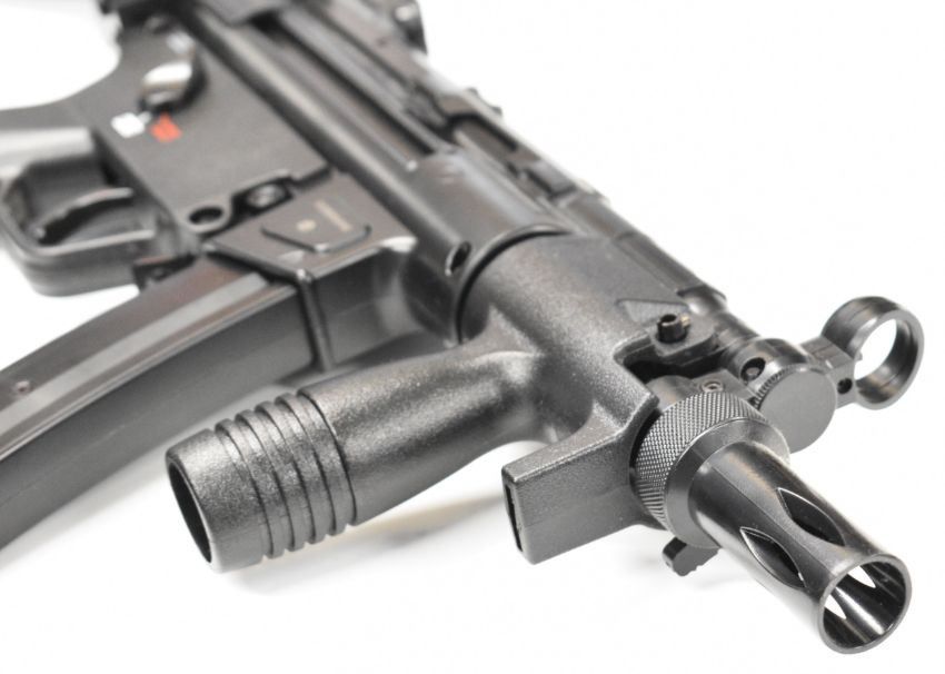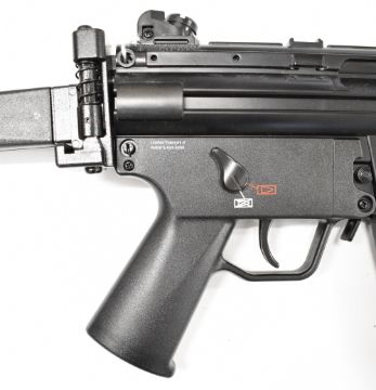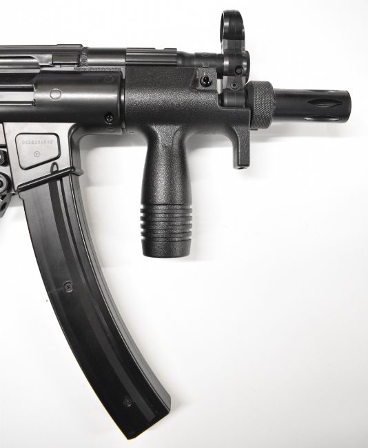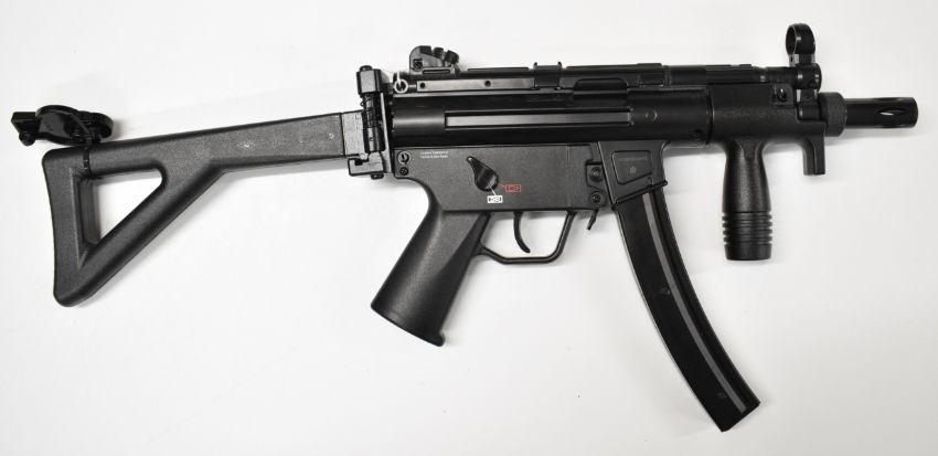 Heckler & Koch MP5K .177 assault style airsoft rifle with folding tactical stock, adjustable sights, pistol grip and multi-shot magazine, serial number D22B206592.